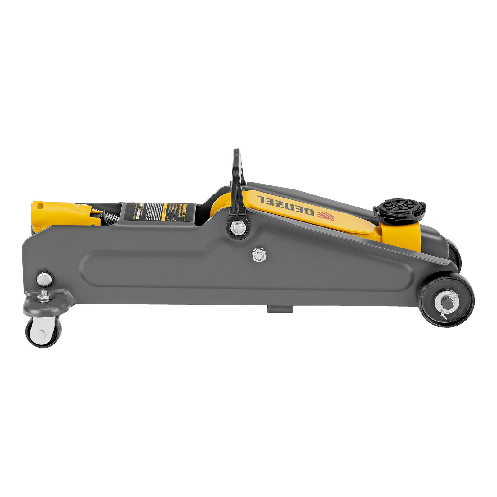 Гидравлический подкатной домкрат Denzel 51230 с высотой подхвата 135 мм предназначен для плавного подъема грузов массой до 2 т на высоту до 385 мм. Домкрат пригодится владельцам легковых автомобилей со стандартным клиренсом.
