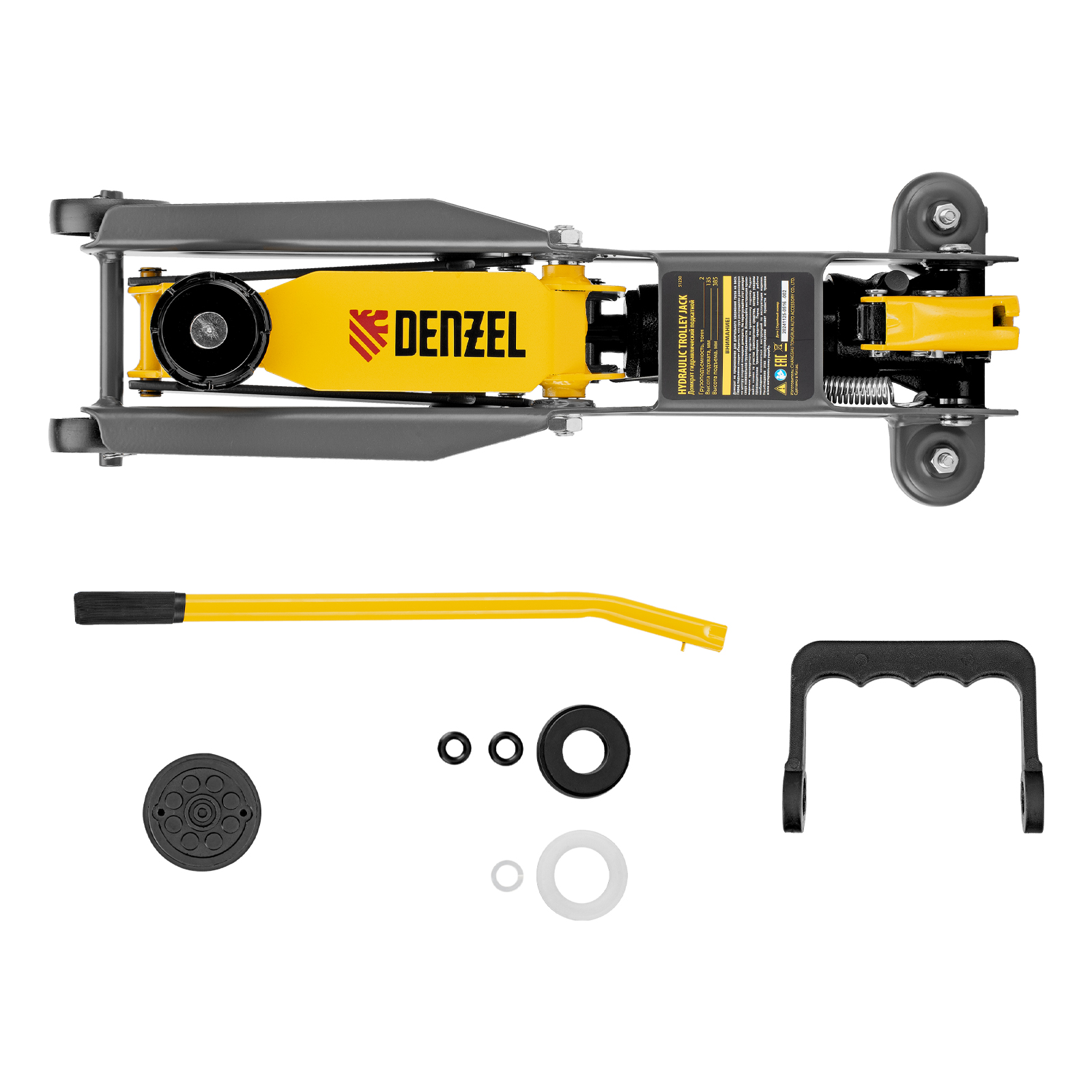 Домкрат гидравлический подкатной, 2 т, 135-385 мм Denzel в Москве