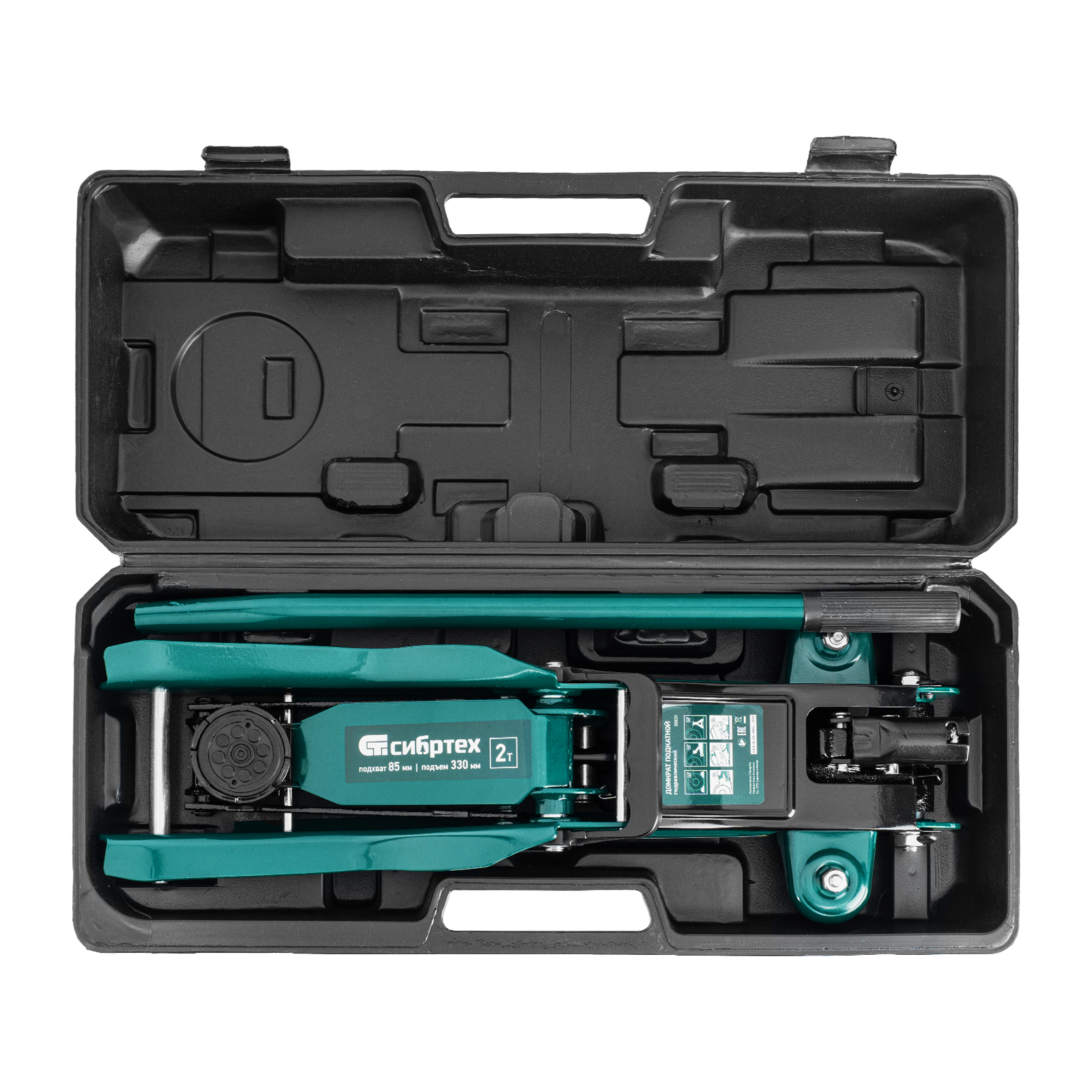 Домкрат гидравлический подкатной, 2 т, 85-330 мм, низкий подхват, в пласт. кейсе Сибртех в Москве