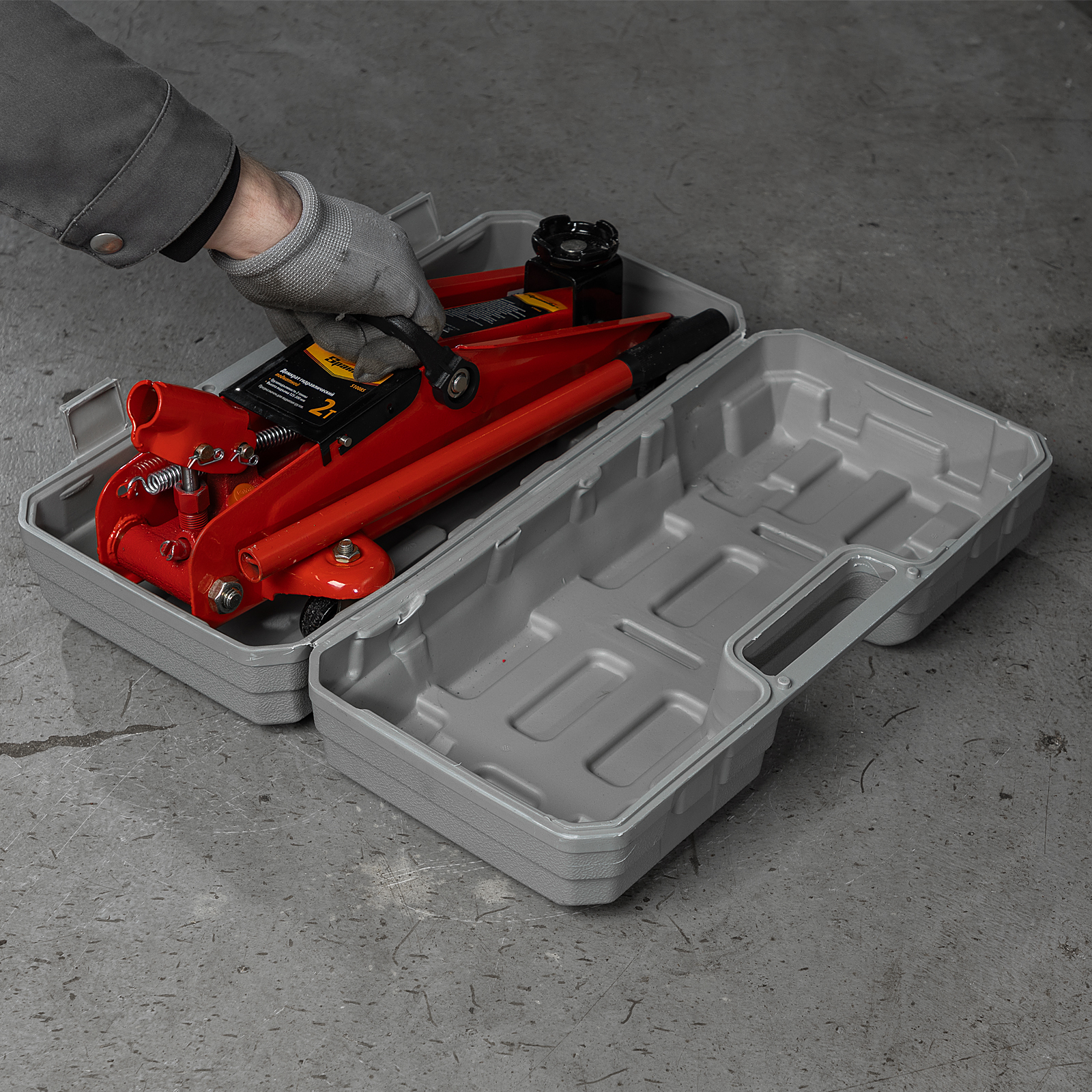 - Удобное хранение и транспортировка — домкрат поставляется в пластиковом кейсе.