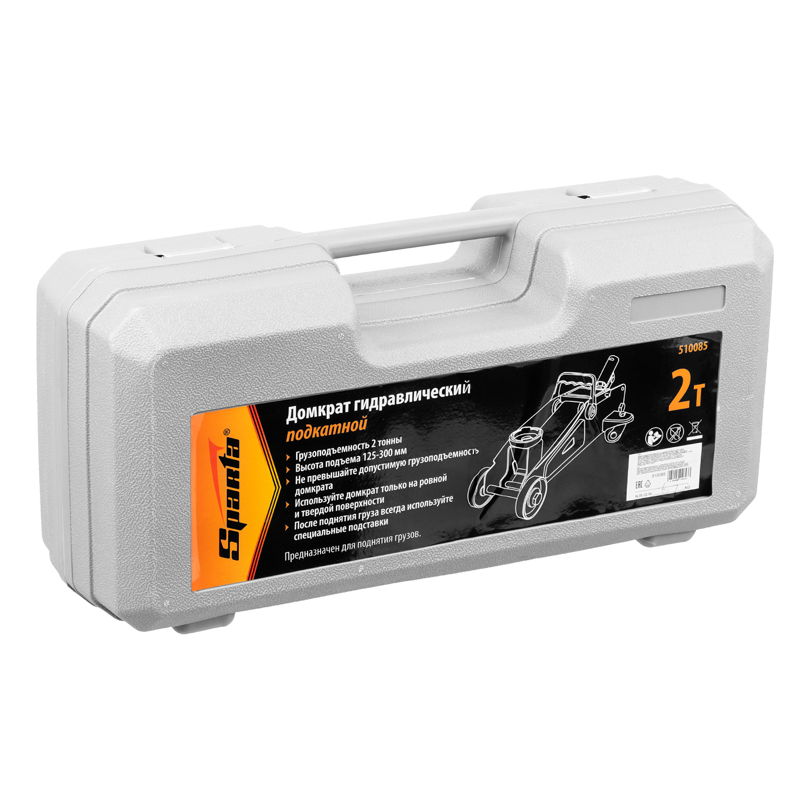 Домкрат гидравлический подкатной, 2 т, h подъема 125-300 мм, в пластиковом кейсе Sparta в Москве