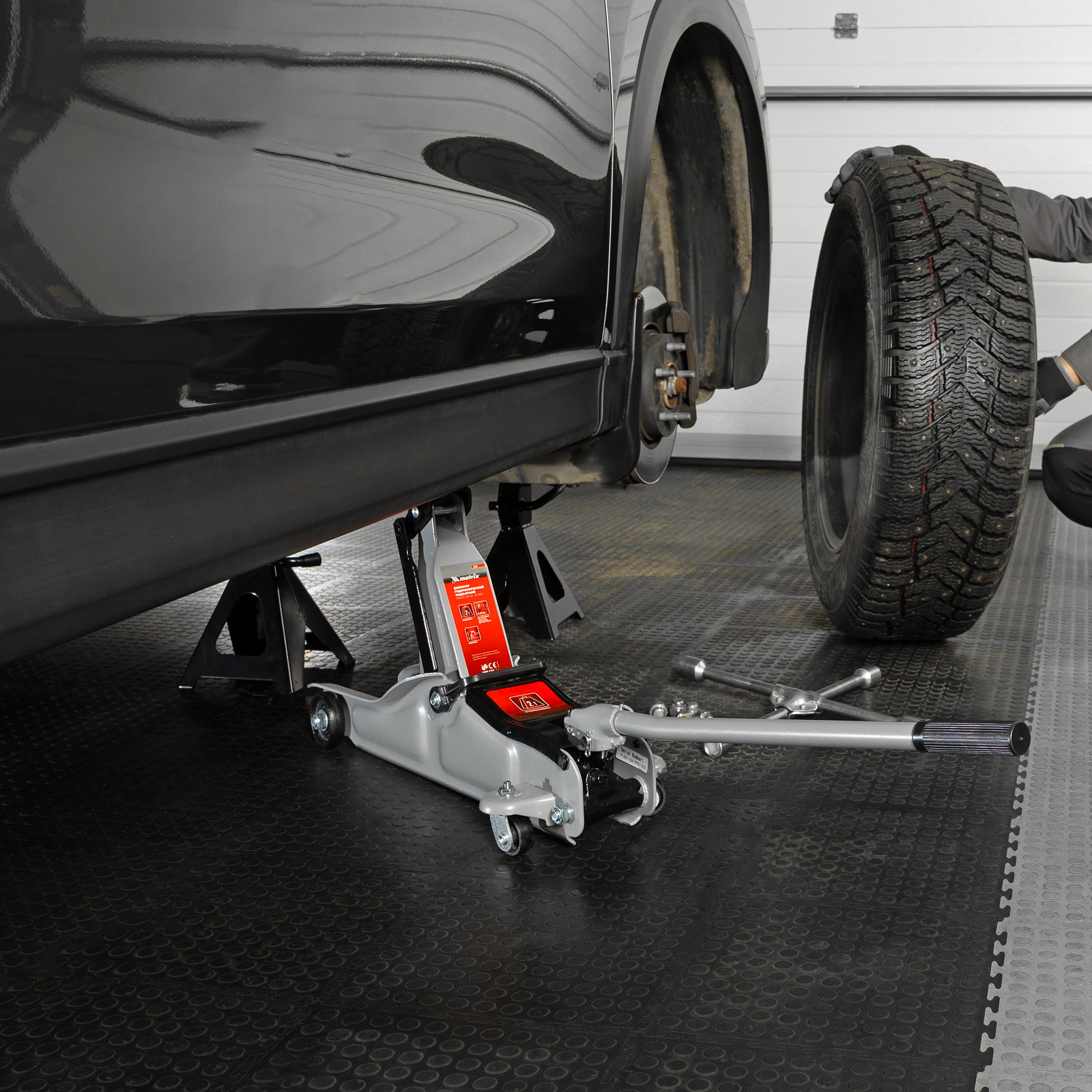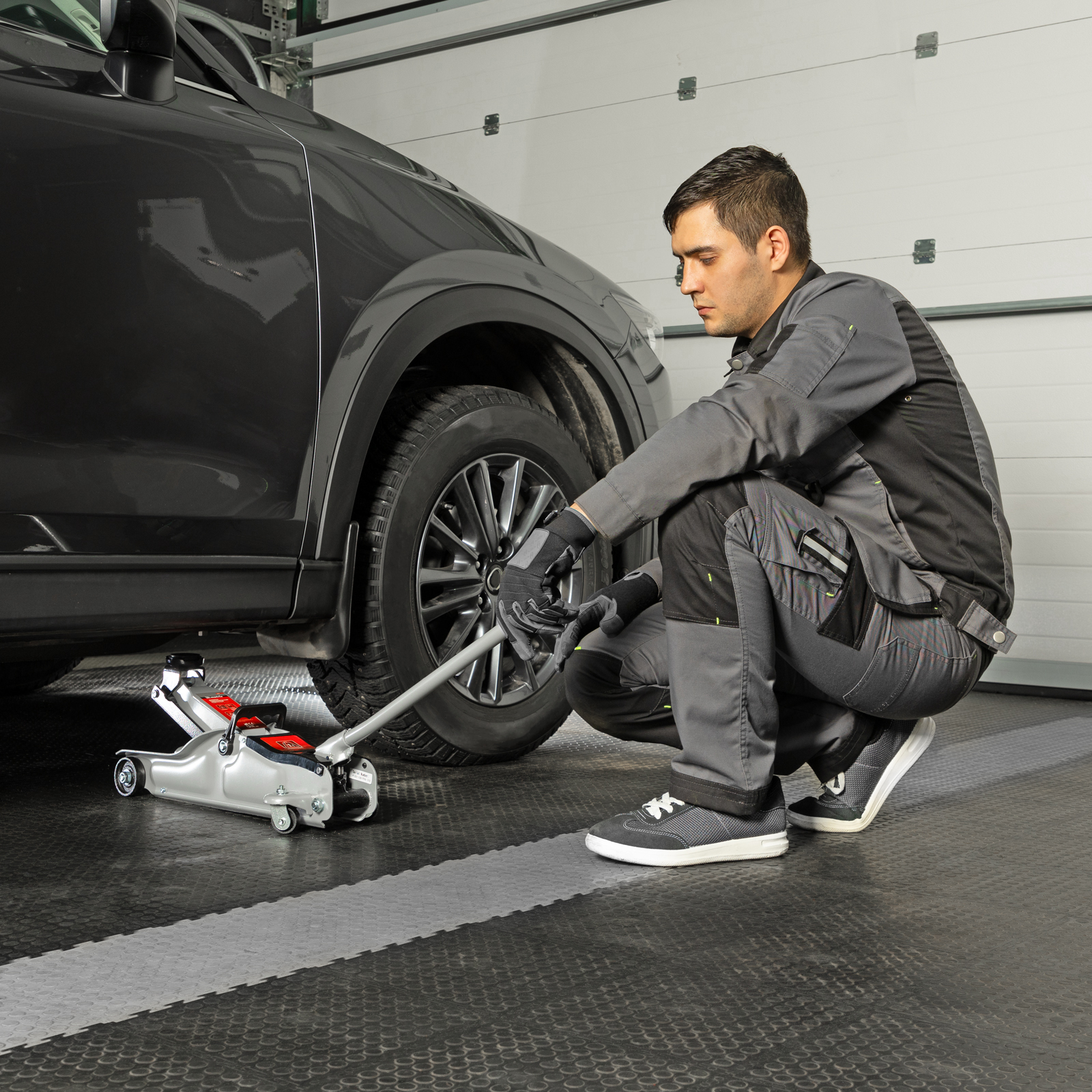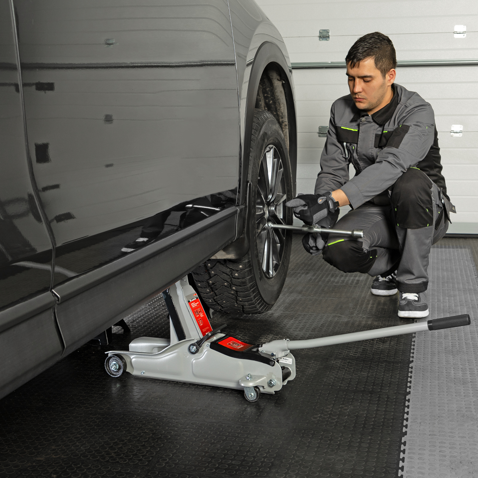 Подкатной гидравлический домкрат Matrix Low Profile 51018 с высотой подхвата 85 мм — полупрофессиональное гаражное оборудование, способное поднимать груз массой до 2 т на высоту до 330 мм. Очень маленькая высота подхвата 85 мм позволяет использовать домкрат для автомашин с небольшим клиренсом. Домкрат будет полезен как в автомастерской, так и в частном гараже.
