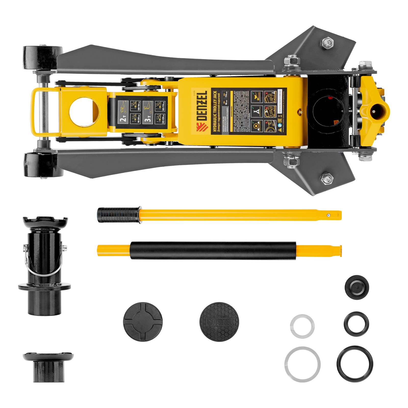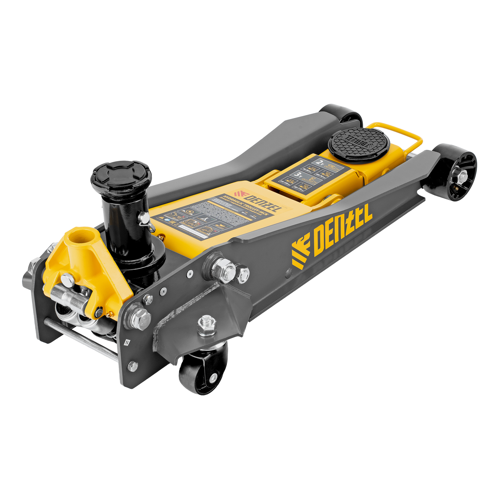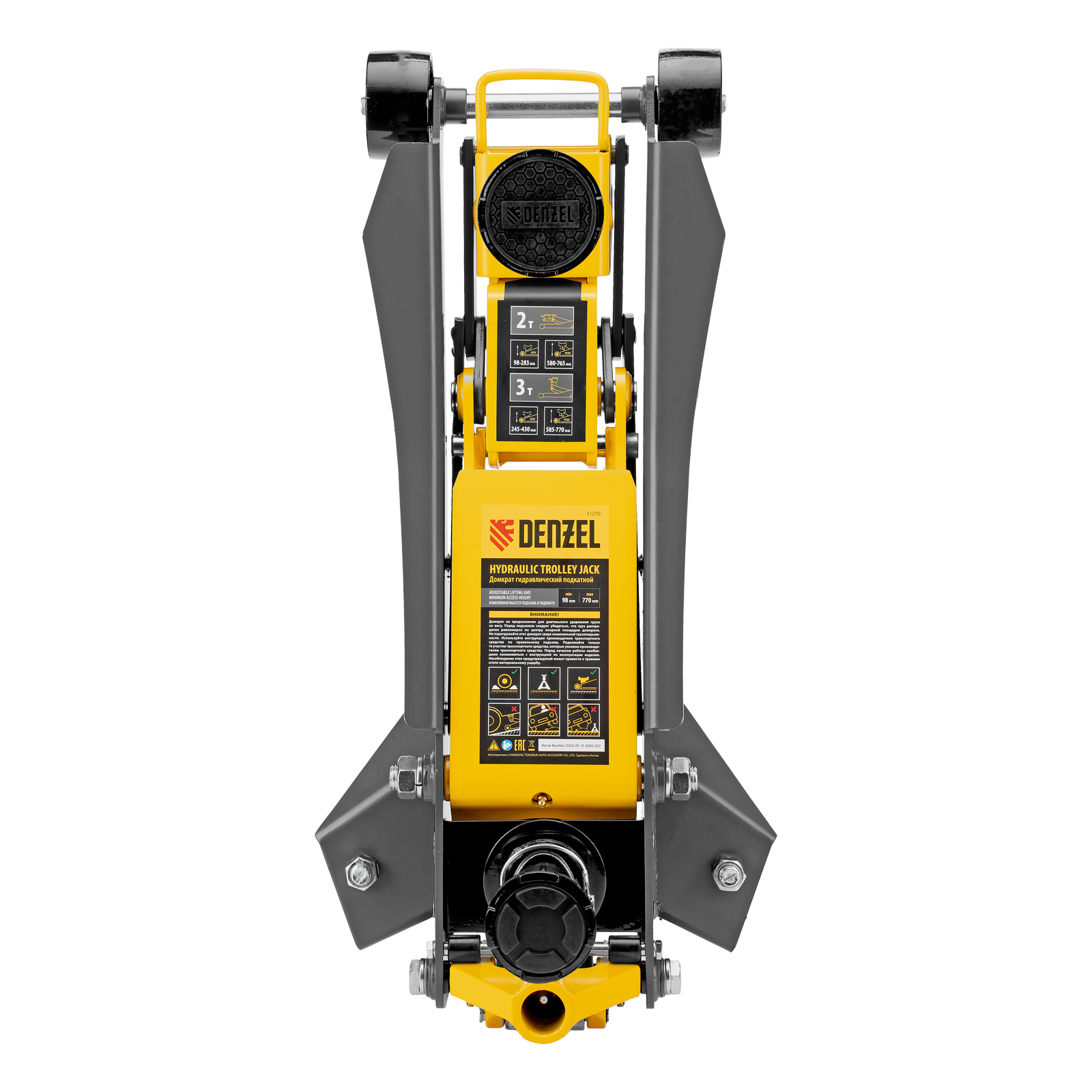 Профессиональный подкатной гидравлический домкрат Denzel 51270 с низким подхватом используется для быстрого подъема на высоту 98-770 мм всех типов автомобилей с любым клиренсом и массой до 2-3 т, в том числе SUV (внедорожников). Регулируемая проставка позволяет менять высоту подхвата и подъема, а также максимальную грузоподъемность. Высота подъема до 770 мм позволяет без труда обслуживать автомобили с высоким клиренсом, такие как рамные внедорожники, например, Dodge RAM, Ford Raptor и т.д.