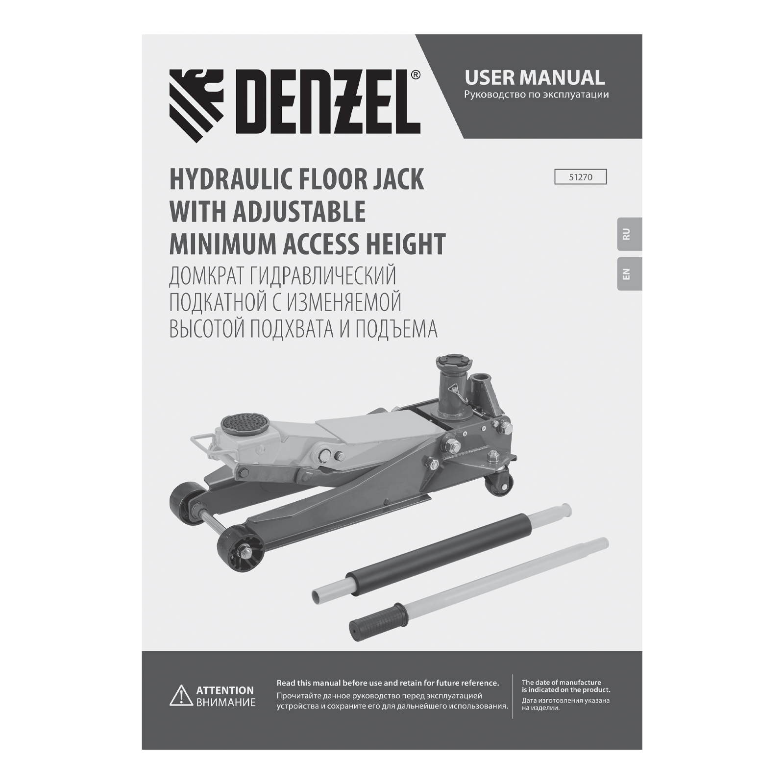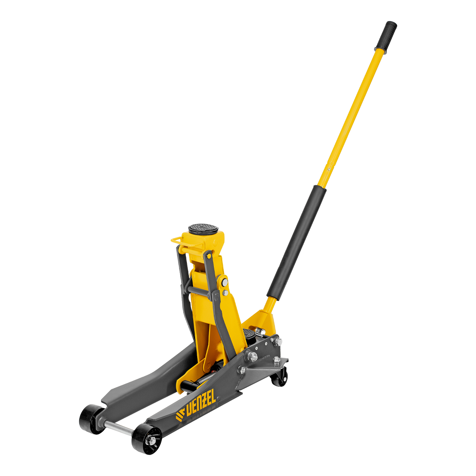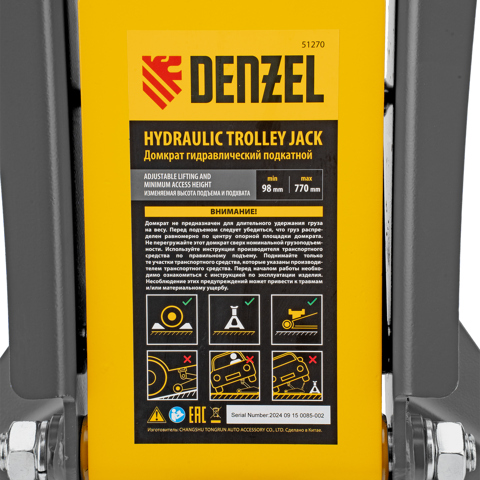 Профессиональный подкатной гидравлический домкрат Denzel 51270 с низким подхватом используется для быстрого подъема на высоту 98-770 мм всех типов автомобилей с любым клиренсом и массой до 2-3 т, в том числе SUV (внедорожников). Регулируемая проставка позволяет менять высоту подхвата и подъема, а также максимальную грузоподъемность. Высота подъема до 770 мм позволяет без труда обслуживать автомобили с высоким клиренсом, такие как рамные внедорожники, например, Dodge RAM, Ford Raptor и т.д.