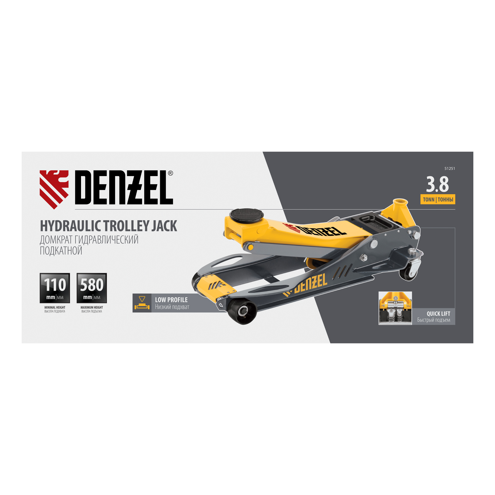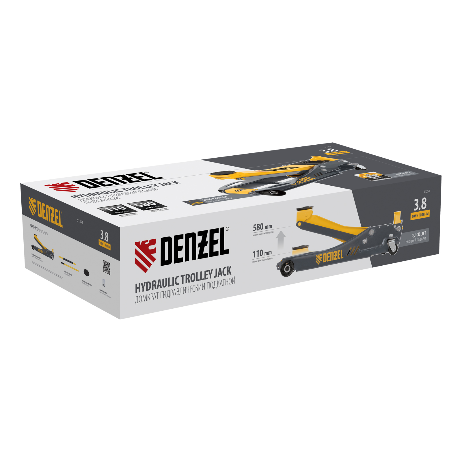 Домкрат гидравлический подкатной, 3,8 т, 110-580 мм, быстрый подъем, низкий подхват, проф. Denzel в Москве