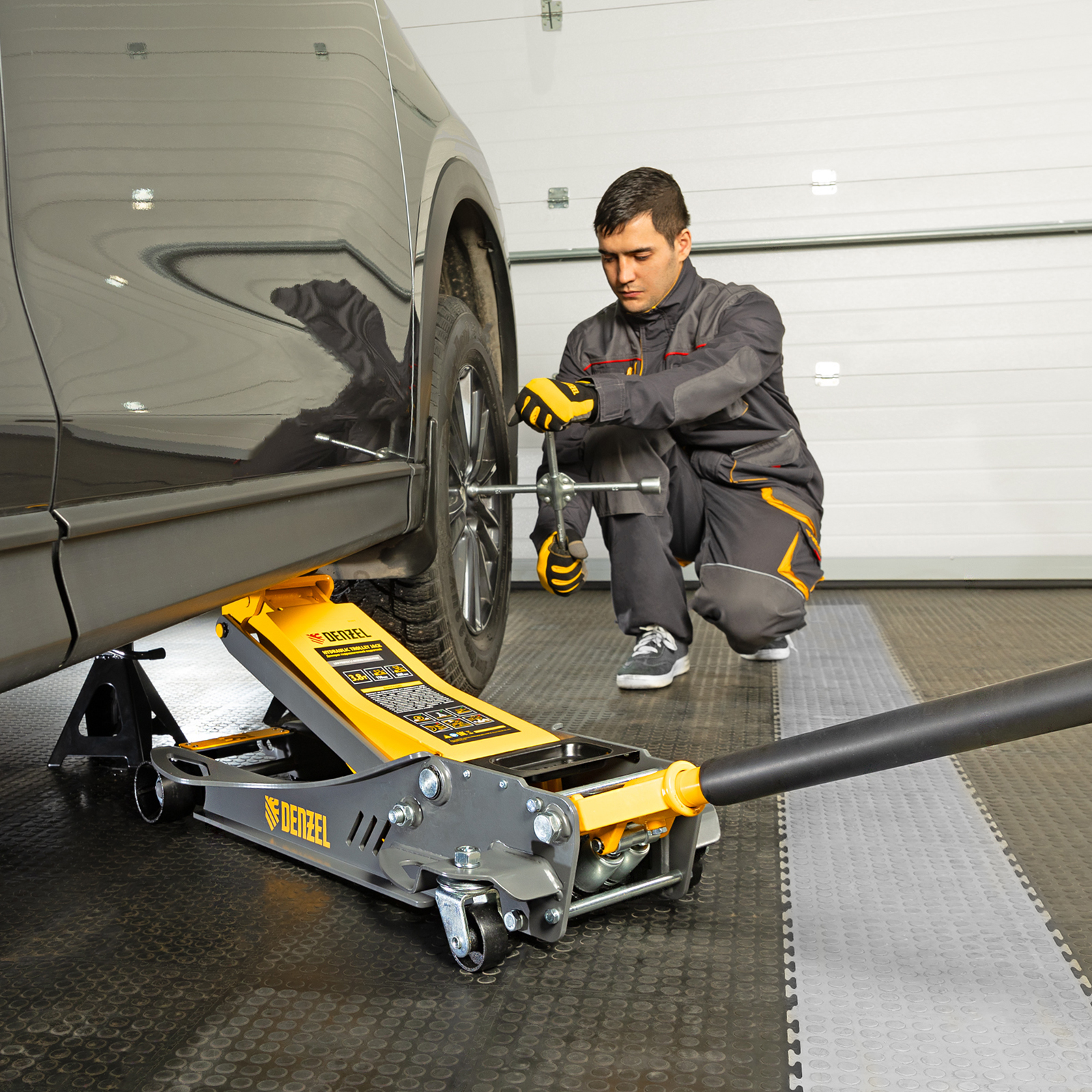 - Аккуратная работа — резиновая опора и прорезиненная рукоятка защищают кузов и днище автомобиля от нежелательных повреждений.