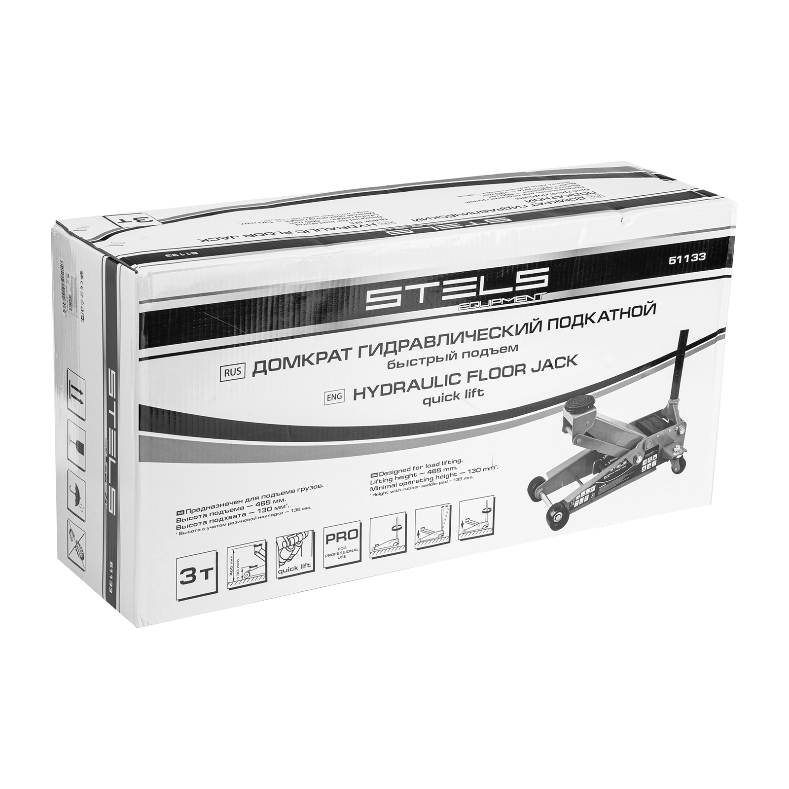 Профессиональный подкатной гидравлический домкрат Stels QUICK LIFT 51133 используется для быстрого подъема на высоту 130-465 мм всех типов автомобилей со стандартным клиренсом и массой до 3 тонн. Благодаря системе QUICK LIFT для достижения предельной высоты достаточно 7 качков рукоятки. Домкрат подходит для использования на станциях техобслуживания и шиномонтажа.