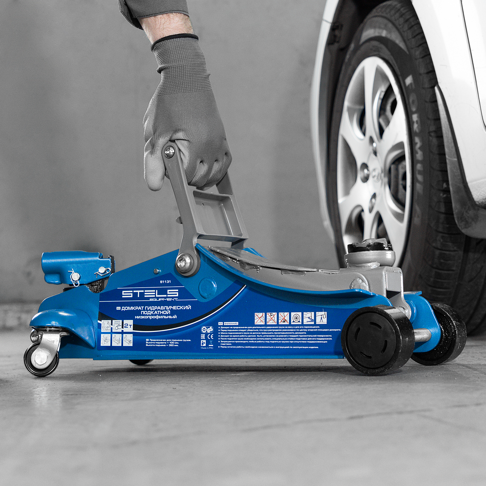 Подкатной гидравлический домкрат Stels Low Profile 51131 с поворотной рукояткой позволяет поднимать грузы весом до 2 т на высоту от 100 до 350 мм. За счет низкого подхвата 100 мм используется для обслуживания автомашин с невысоким дорожным просветом. Благодаря поворотной ручке позволяет работать в условиях нехватки пространства. Домкрат подходит для самостоятельного обслуживания авто.