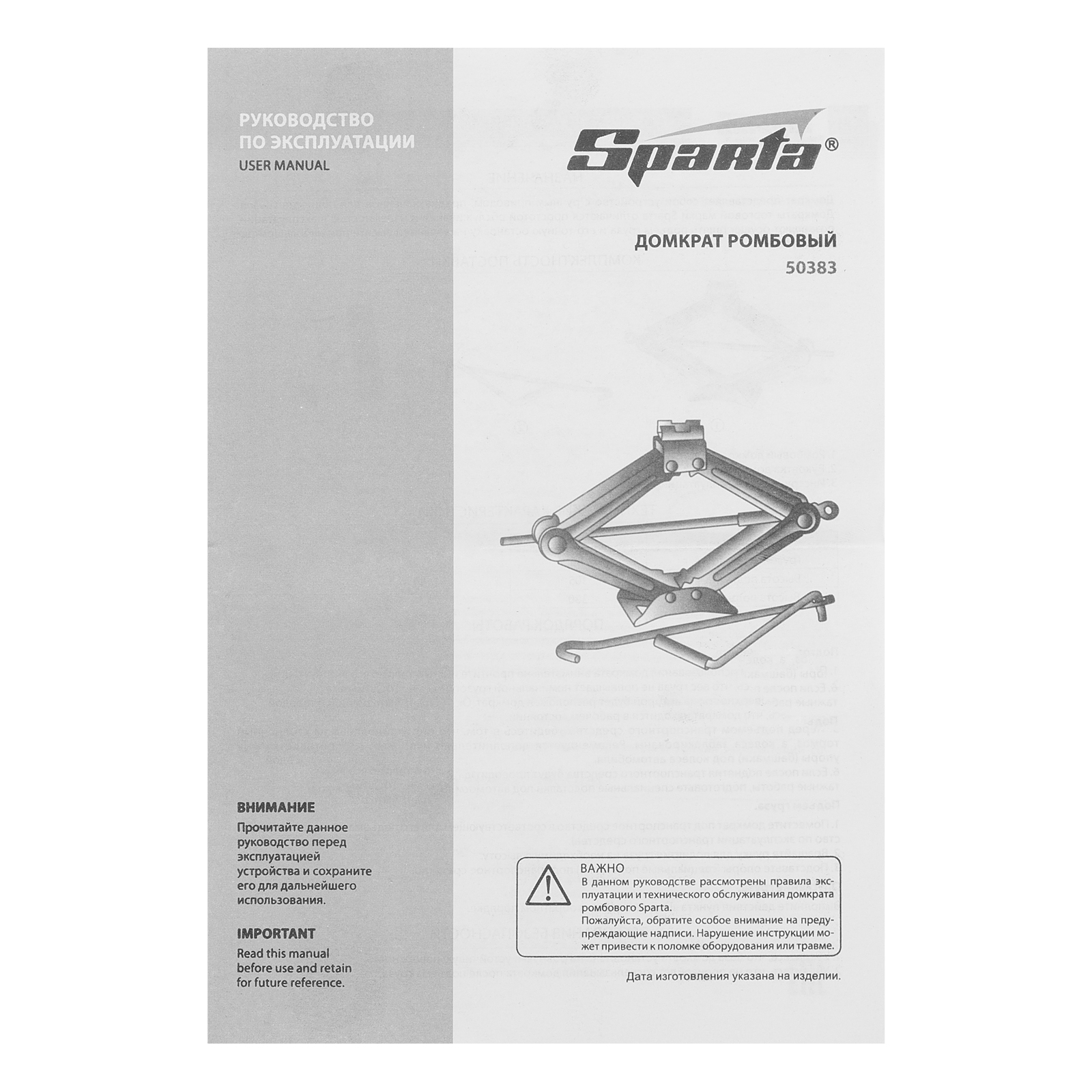 Ромбовый домкрат - 1 штРукоятка домкрата - 1 штРуководство по эксплуатации - 1 шт |