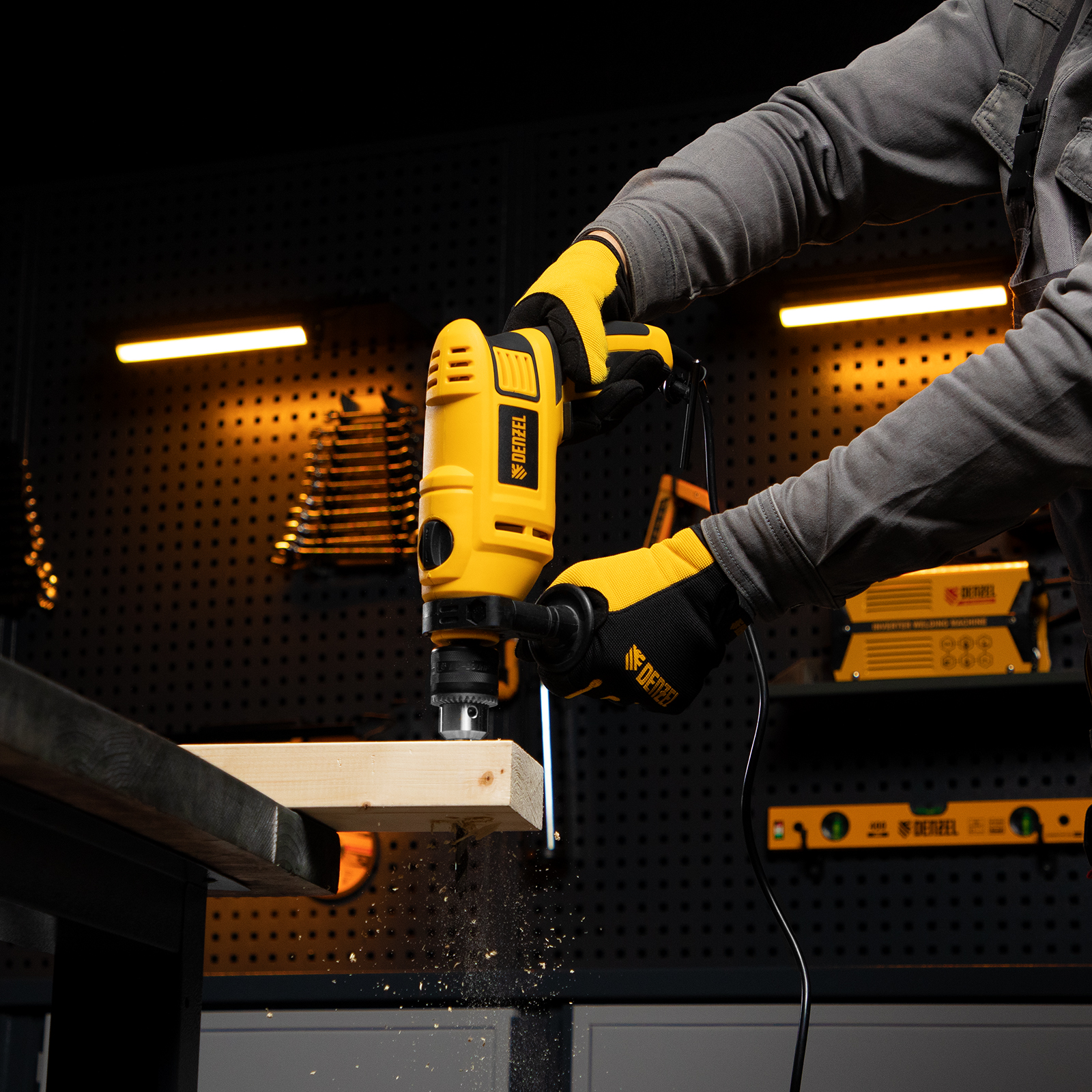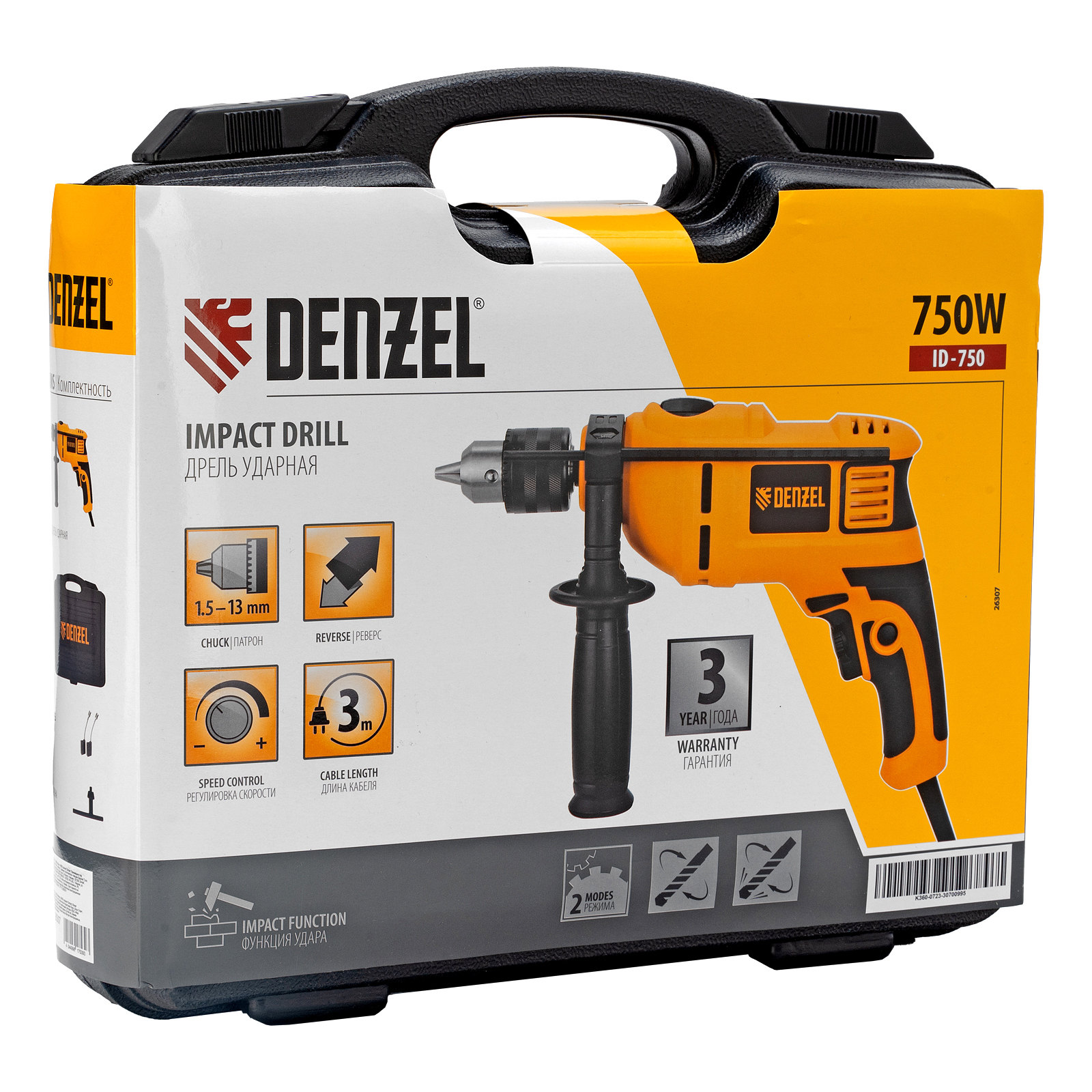 Подходит для работы с оснасткой малого диаметра 1,5-13 мм._Для работы с левосторонними сверлами и шлифовальными насадками предусмотрен реверс, изменяющий направление вращения патрона._Фиксация патрона с помощью ключа обеспечивает надежное закрепление оснастки даже в ударном режиме._Для комфортной и точной работы предусмотрена фиксация положения регулятора вращения и кнопки включения, которая исключает непроизвольное переключение._Для удобства работы с различными материалами предусмотрено отключение ударной функции. Массивный промщит на ударном механизме обеспечивает эффективность работы даже при сверлении твердых материалов.