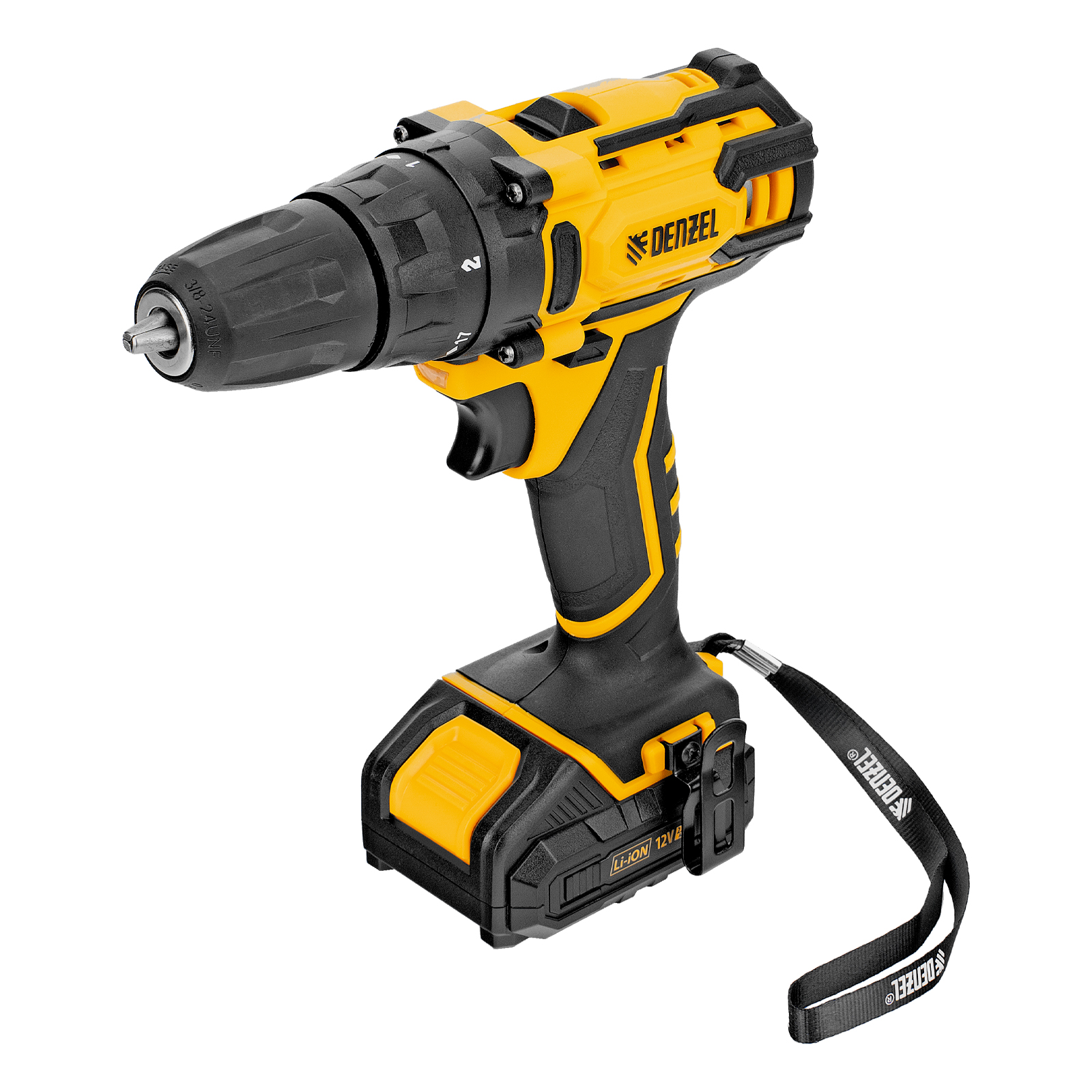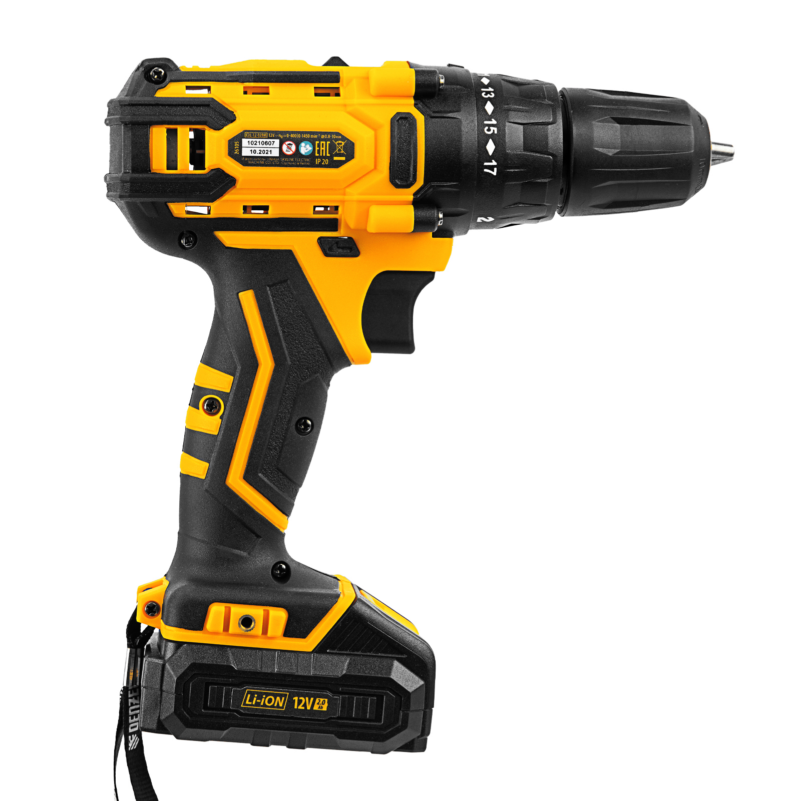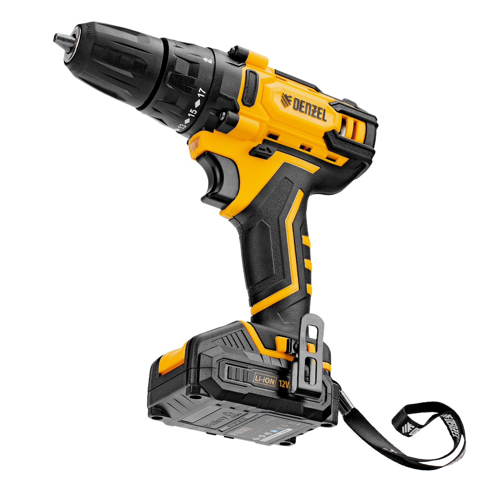 Аккумуляторная дрель-шуруповерт Denzel CDL-12-02BM 26105 с 2 батареями Li-Ion 12 В предназначена для монтажа и демонтажа резьбовых соединений, cверления отверстий в металле (до 10 мм), древесине (до 16 мм), пластмассе и других материалах. Инструмент пригодится профессионалам и любителям на строительной площадке, дома или на даче.,Надежные литий-ионные аккумуляторы без эффекта памяти и защитой от глубокого разряда обеспечивают долгий срок службы инструмента. Дрель не зависит от сети питания, что делает удобной работу на строительных объектах, на высоте и в отдаленных участках дома.
