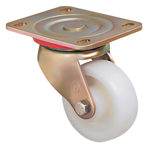 Большегрузное колесо ED01HKZ100 бренда EMES изготовлено из нейлона, устойчиво к воздействию различных агрессивных химических веществ. Подходит для эксплуатации в условиях, требующих соблюдения высоких санитарно-гигиенических требований — например, на предприятиях пищевой промышленности, в лабораториях и медицинских учреждениях. Кронштейн у модели поворотный, изготовлен из оцинкованной стали.