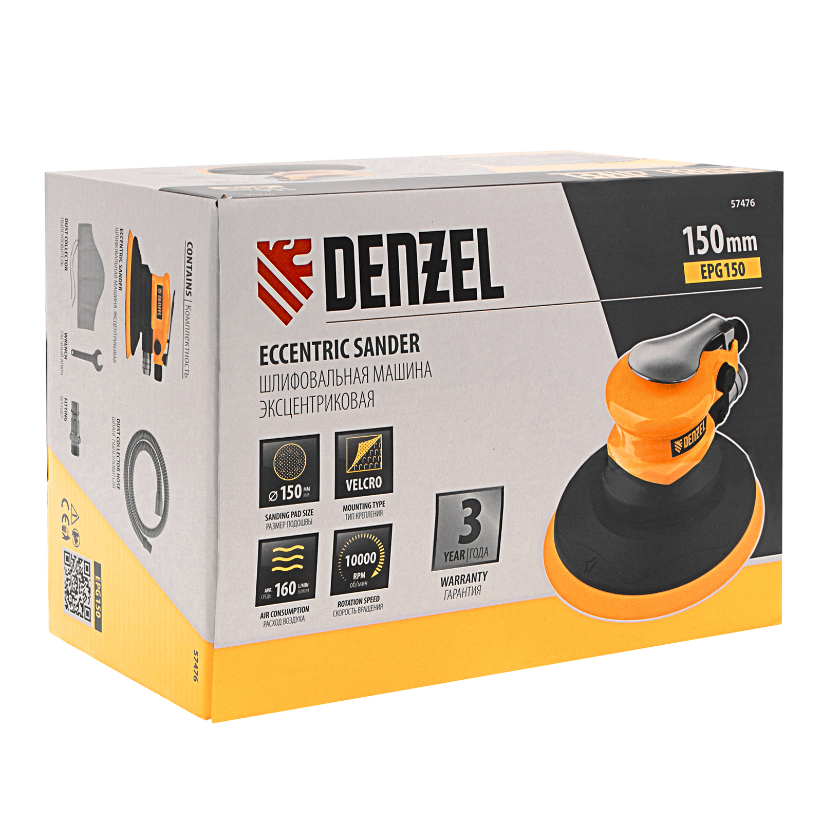 Эксцентриковая шлифовальная машина EPG150, 150 мм, 10000 об/мин, 5 мм, 160 л/мин Denzel в Москве