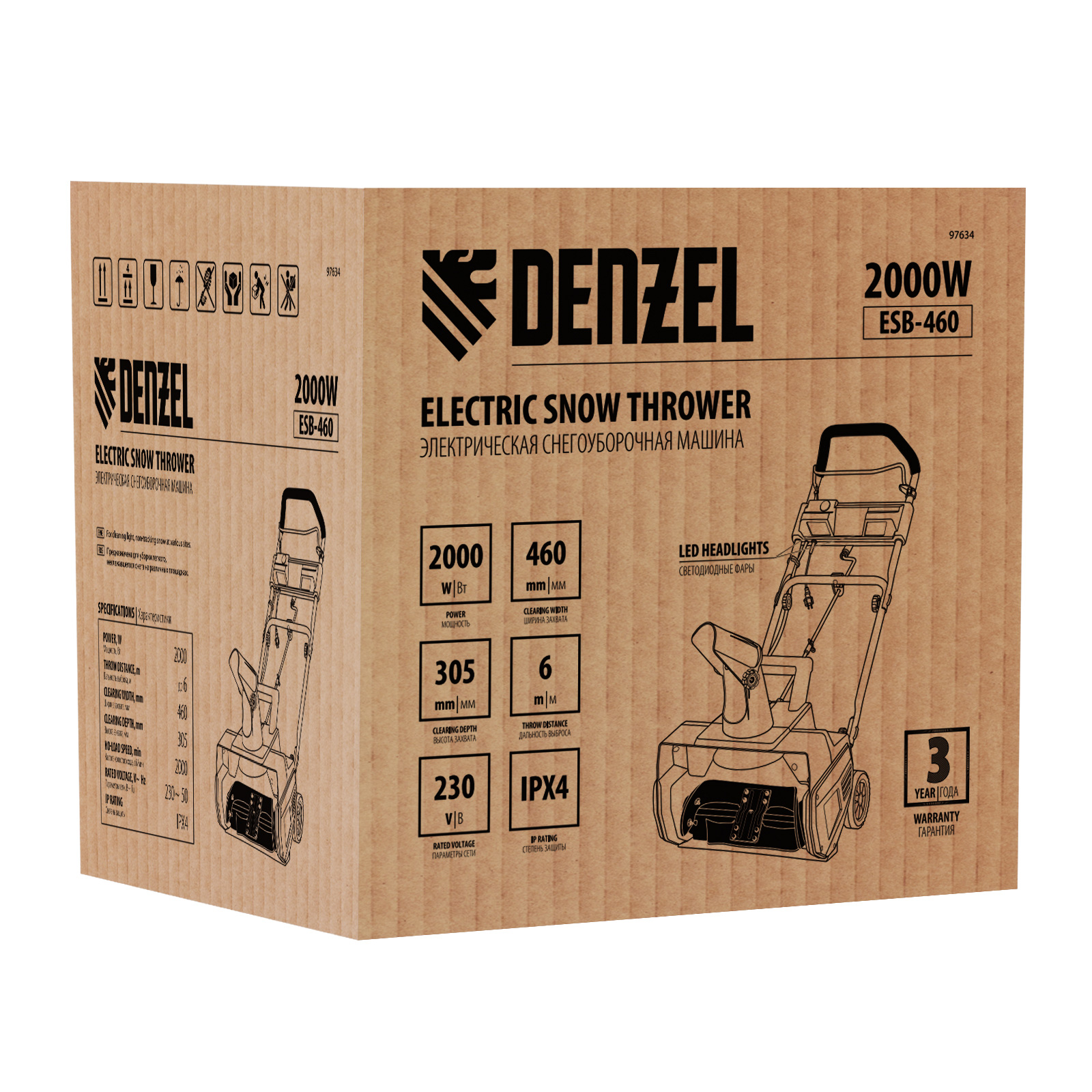 Электрическая снегоуборочная машина Denzel ESB-460 мощностью 2 кВт предназначена для уборки легкого снега на ровных поверхностях: площадках, парковках, дорожках, тротуарах. Проста в управлении, не требует сложного технического обслуживания. Машина пригодится для уборки придомовой территории и загородного участка.