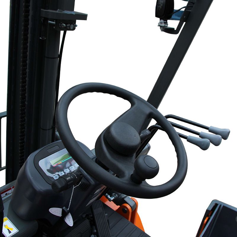 Модель оснащена емким свинцово-кислотным аккумулятором, который обеспечивает длительную автономную работу. По запросу доступна версия с литий-ионной АКБ. Электрический привод делает погрузчик экологичным и безопасным для использования в закрытых помещениях. Пневматические шины обеспечивают плавное движение, снижают вибрации и улучшают проходимость на неровных поверхностях.