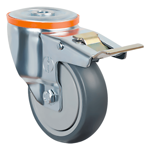 Аппаратное колесо EM04 MBT 80 F предназначено для установки на торговое оборудование, больничную мебель, медицинскую аппаратуру и т. п. Шинка выполнена из серой резины, кронштейн — из оцинкованной стали, а обод — из полипропилена. Колесо имеет диаметр 80 мм, ширину обода 32 мм и работает в температурном диапазоне от -20 до +60 °С. Грузоподъемность модели — 75 кг.