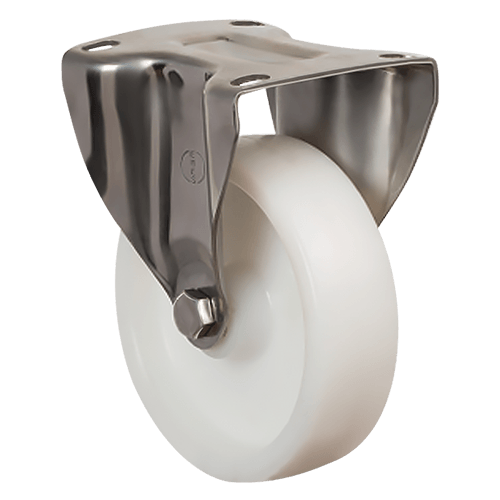 Неповоротное большегрузное колесо EZ02HKZ150INOX изготовлено из прочного нейлона, что обеспечивает стойкость к воздействию различных химических веществ и влаги, позволяет выдерживать высокие нагрузки без деформации. Максимальная грузоподъемность модели составляет 350 кг. Кронштейн из высококачественной нержавеющей стали устойчив к коррозии.