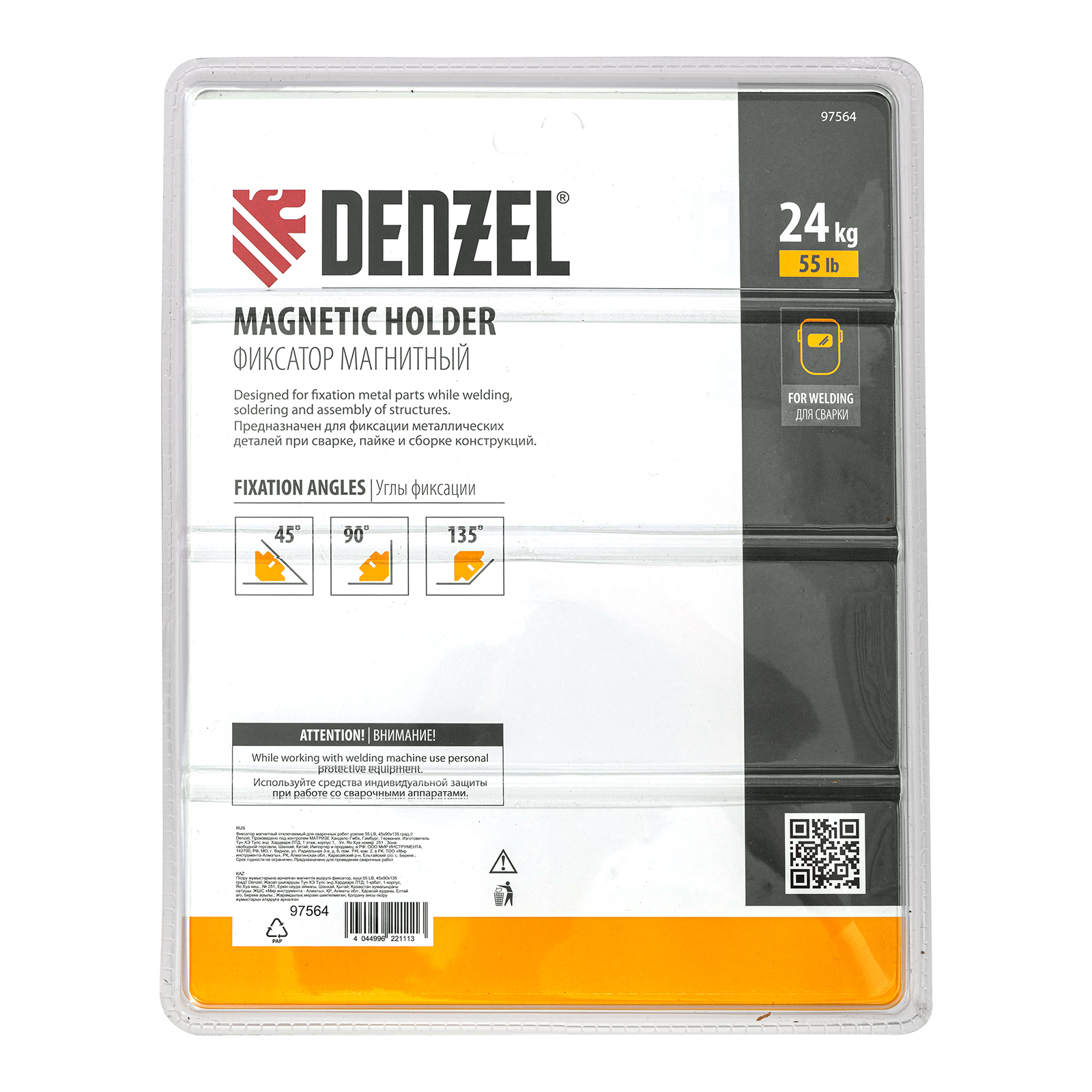 Фиксатор магнитный отключаемый для сварочных работ Denzel 97564 выдерживает усилие 55 LB (25 кг) и способен удерживать металлические предметы под углом 45°, 90°, 135°. Применяется при пайке, сварке, монтаже уголков, труб, профилей и других конструкций. Магнитное поле при необходимости отключается, что упрощает установку фиксатора и его снятие.