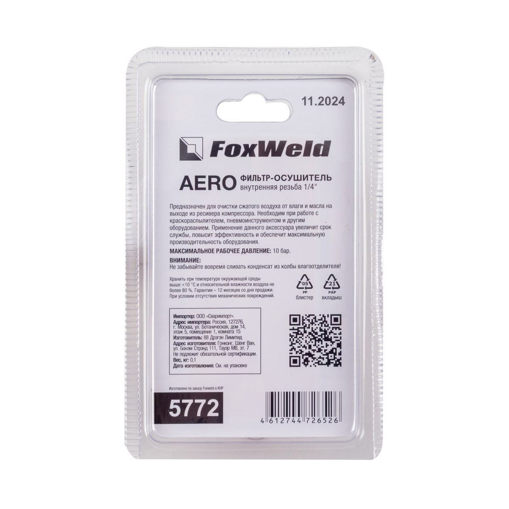 Присоединительные параметры: 1/4" F - 1/4" F (внутренняя резьба на входе и выходе)