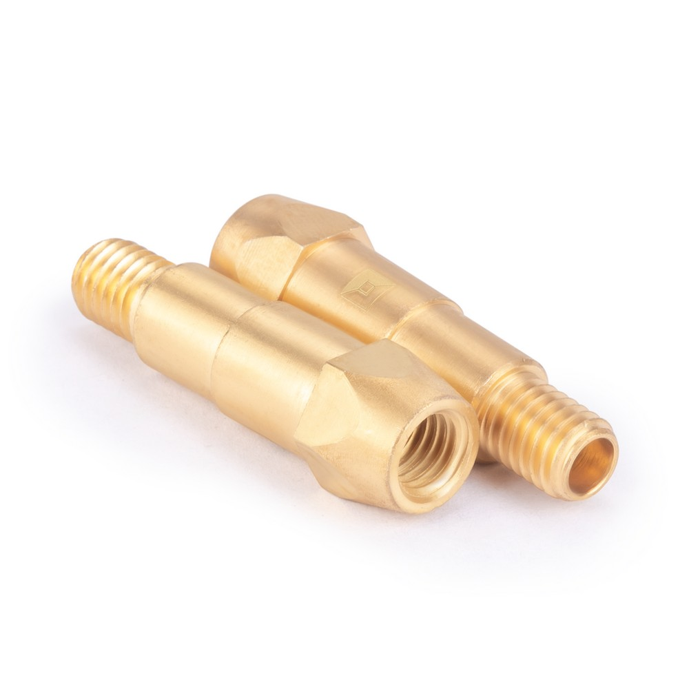 Держатель наконечника M8 надежно закрепляет токопроводящий наконечник на горелке посредством резьбового соединения и располагается на конце гусака. Держатель имеет простую конструкцию и выполнен из качественной латуни. В ряде случаев устройство выступает в качестве газораспределителя. Важное преимущество изделия — оптимальное соотношение цены и качества.