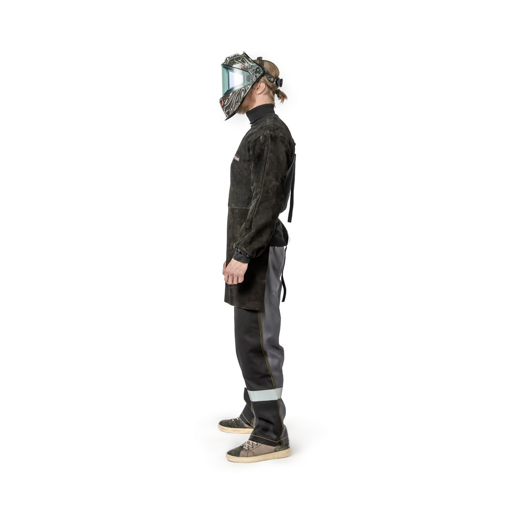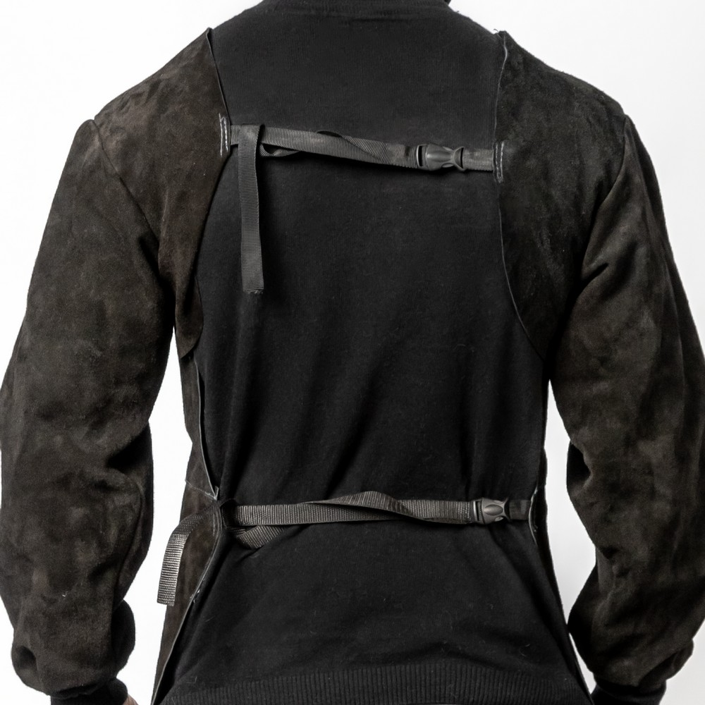 Фартук спилковый с рукавами изготовлен из высококачественного спилка толщиной 1,2 – 1,4 мм. Предназначен для защиты от брызг раскаленного металла, повышенной температуры и механической грязи во время сварки. Фартук выполнен с рукавами и манжетами на резинке. Соединительные швы между фартуком и креплением прошиты огнестойкой нитью. Крепление осуществляется за счет стропы и фастекс.КЕВЛАРОВЫЕ НИТИ: Швы и стропы прошиты прочной огнестойкой нитью Kevlar, что придаёт дополнительную прочность фартуку и защищает тело при сварочных работах.ПРЕИМУЩЕСТВА:Машинная вышивка логотипаИзготовлен из высококачественного спилка толщиной 1,2 – 1,4 ммНа любой сезонМатериал: натуральный спилокВид застежки: фастексФабричное производство