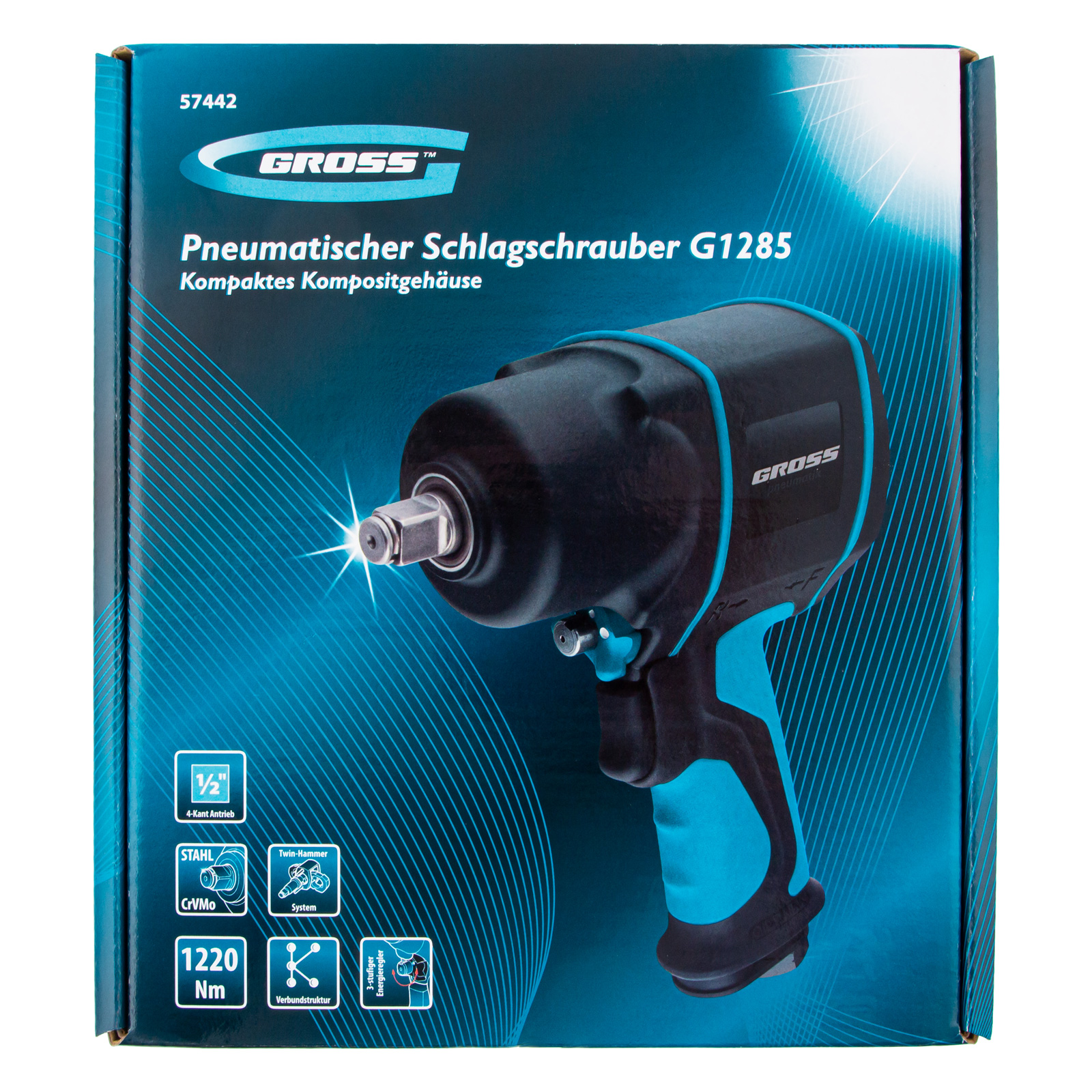 Гайковерт пневматический ударный G1285, 1/2, Twin Hammer, 1220Нм, 6500 об/мин, композитный Gross в Москве