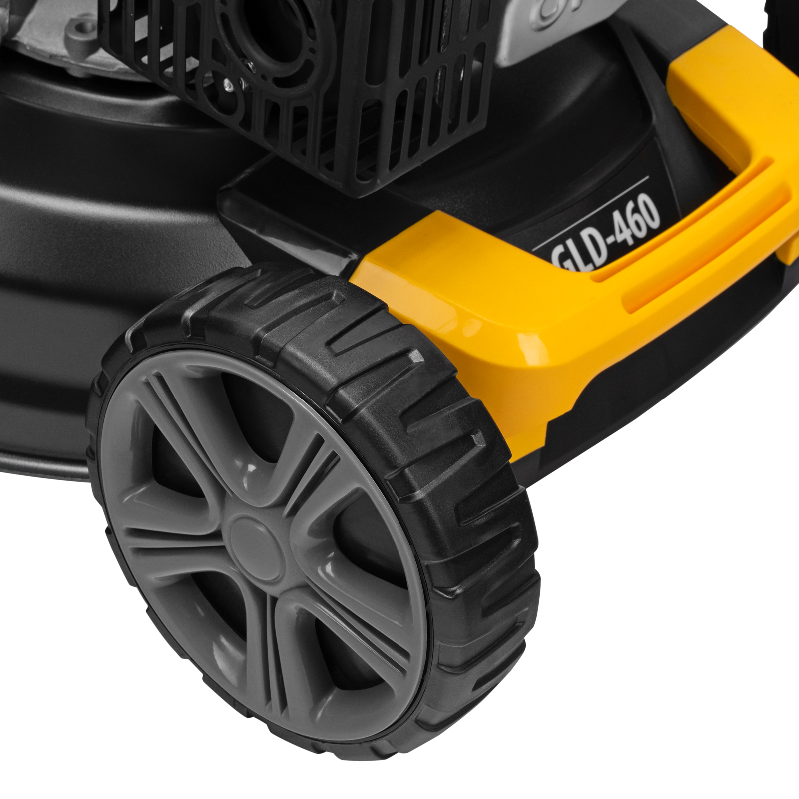 - Высокая эффективность — усиленный стальной корпус, закаленный до твердости 45 HRC нож и колеса увеличенного диаметра обеспечивают лучшее втягивание травы и свободную проходимость без повреждения газона.
