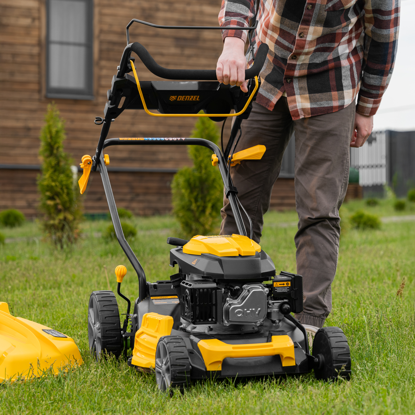 - Высокое качество сборки — мощный и надежный двигатель Denzel оснащен свечой зажигания BOSCH/NGK.