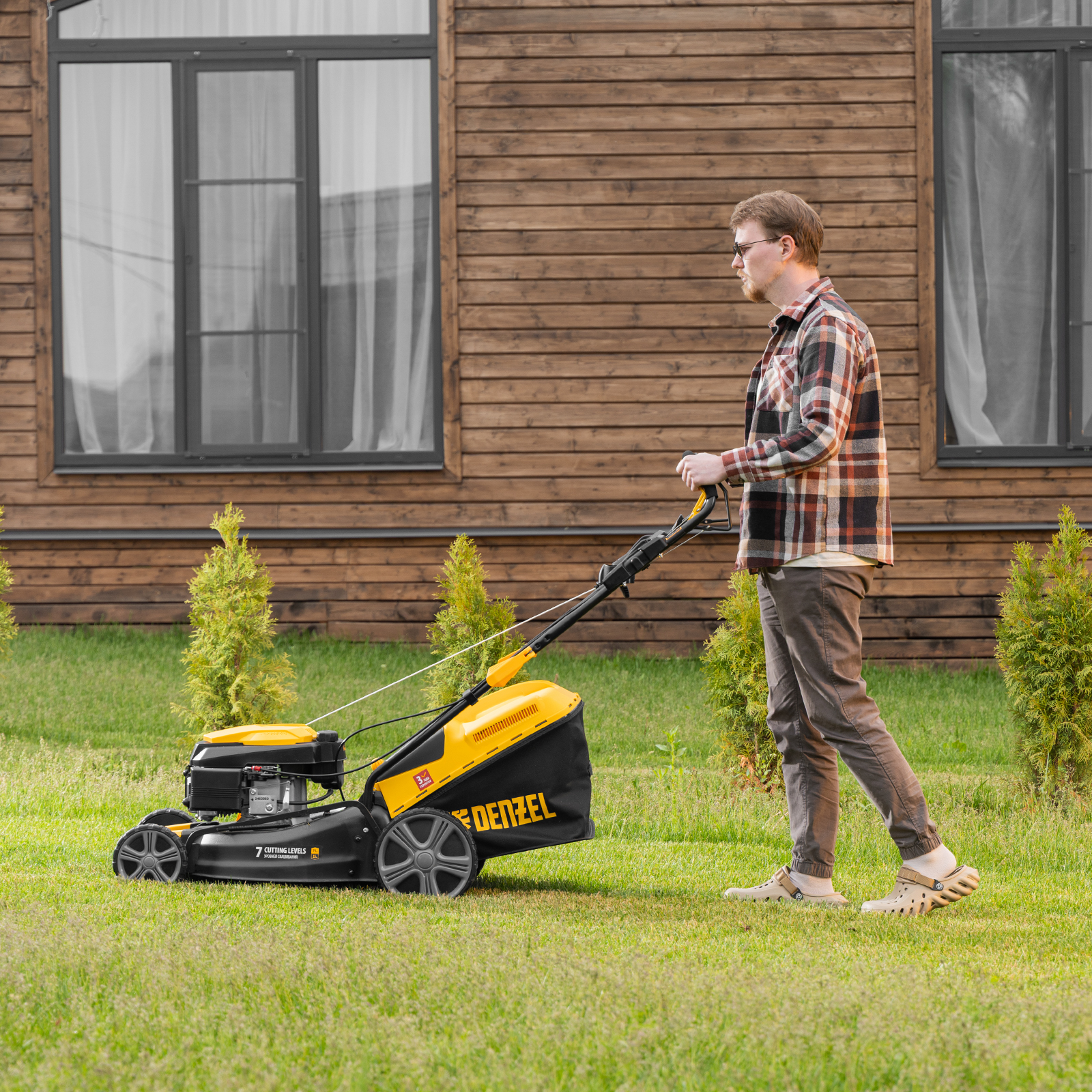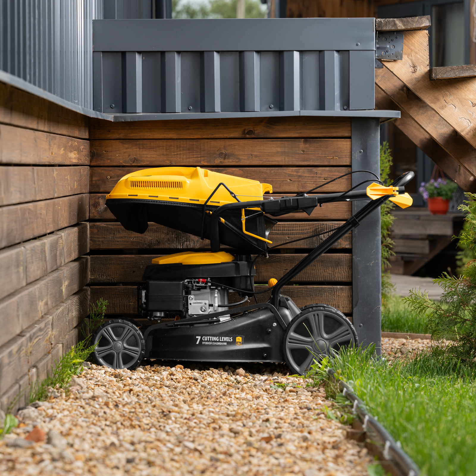- Гарантия 3 года — высокое качество газонокосилки подтверждено производителем.