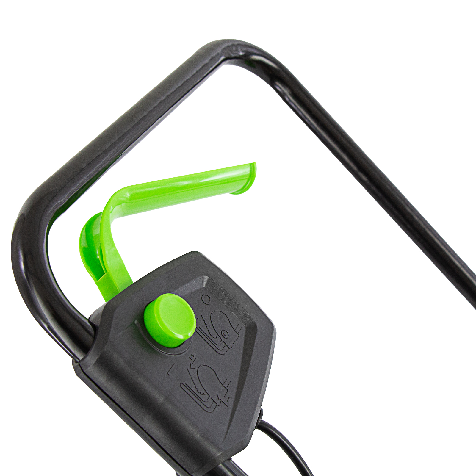- Индикатор наполненности контейнера — флажок поднимается под действием воздушного потока, если травы в сборнике мало, и опускается при его заполнении.