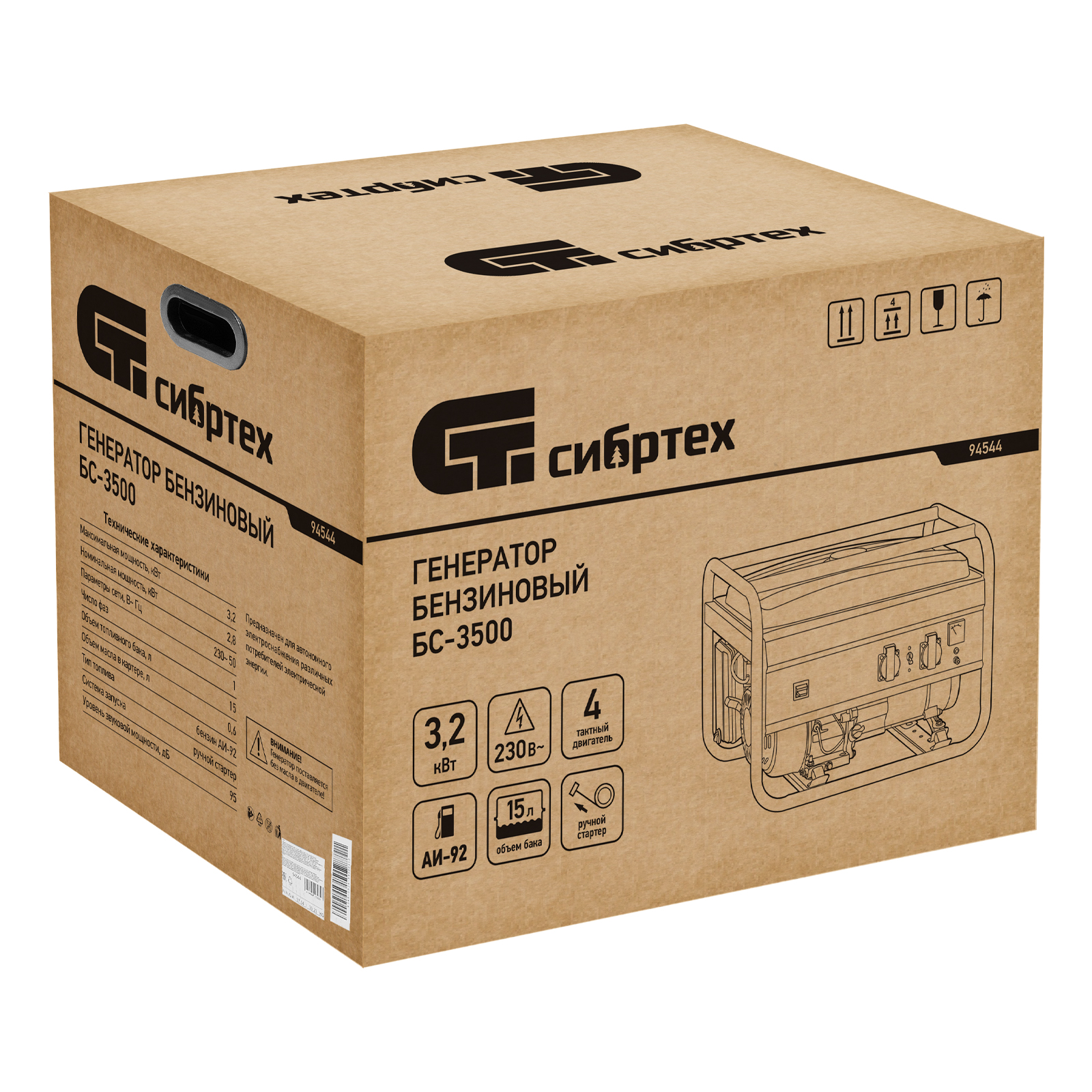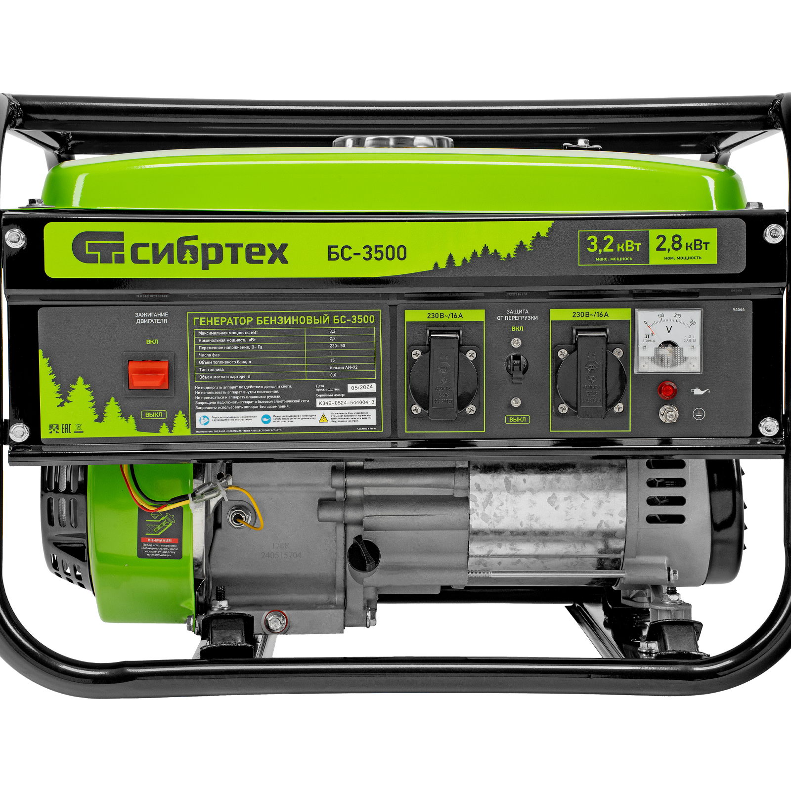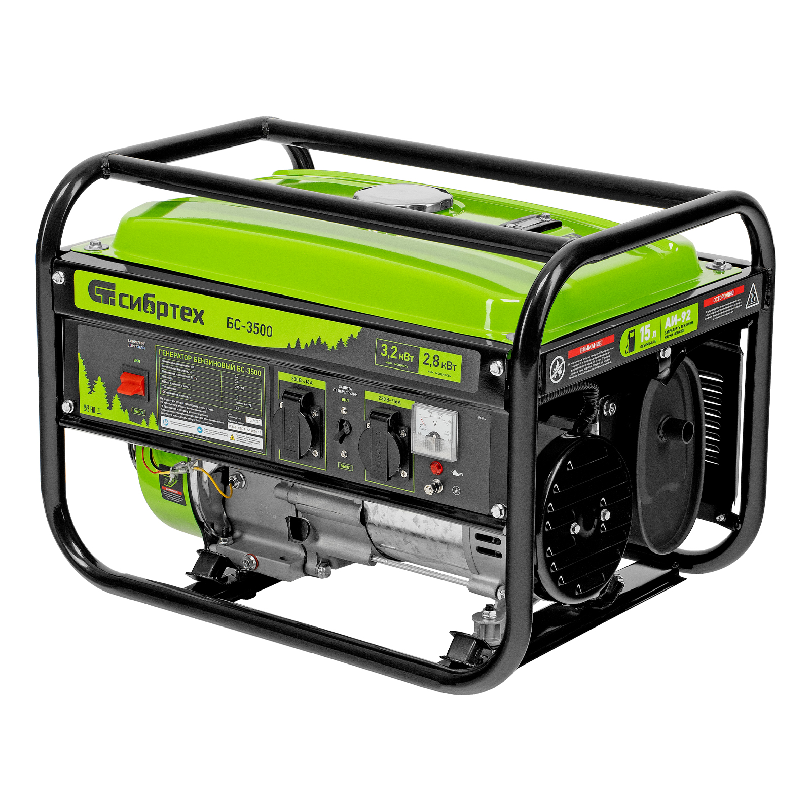 Генератор бензиновый БС-3500, 3.2 кВт, 230В, четырехтактный, 15 л, ручной стартер Сибртех в Москве