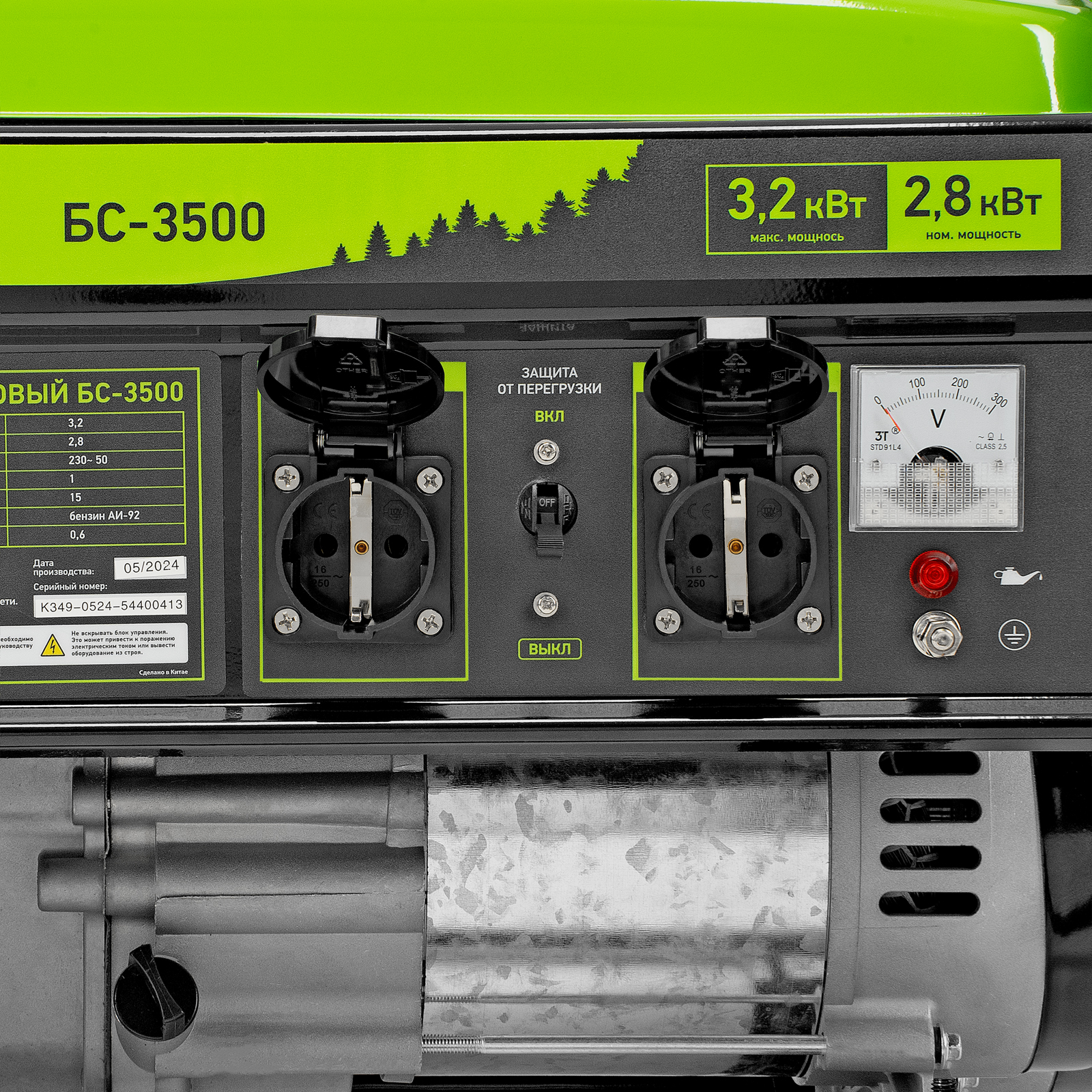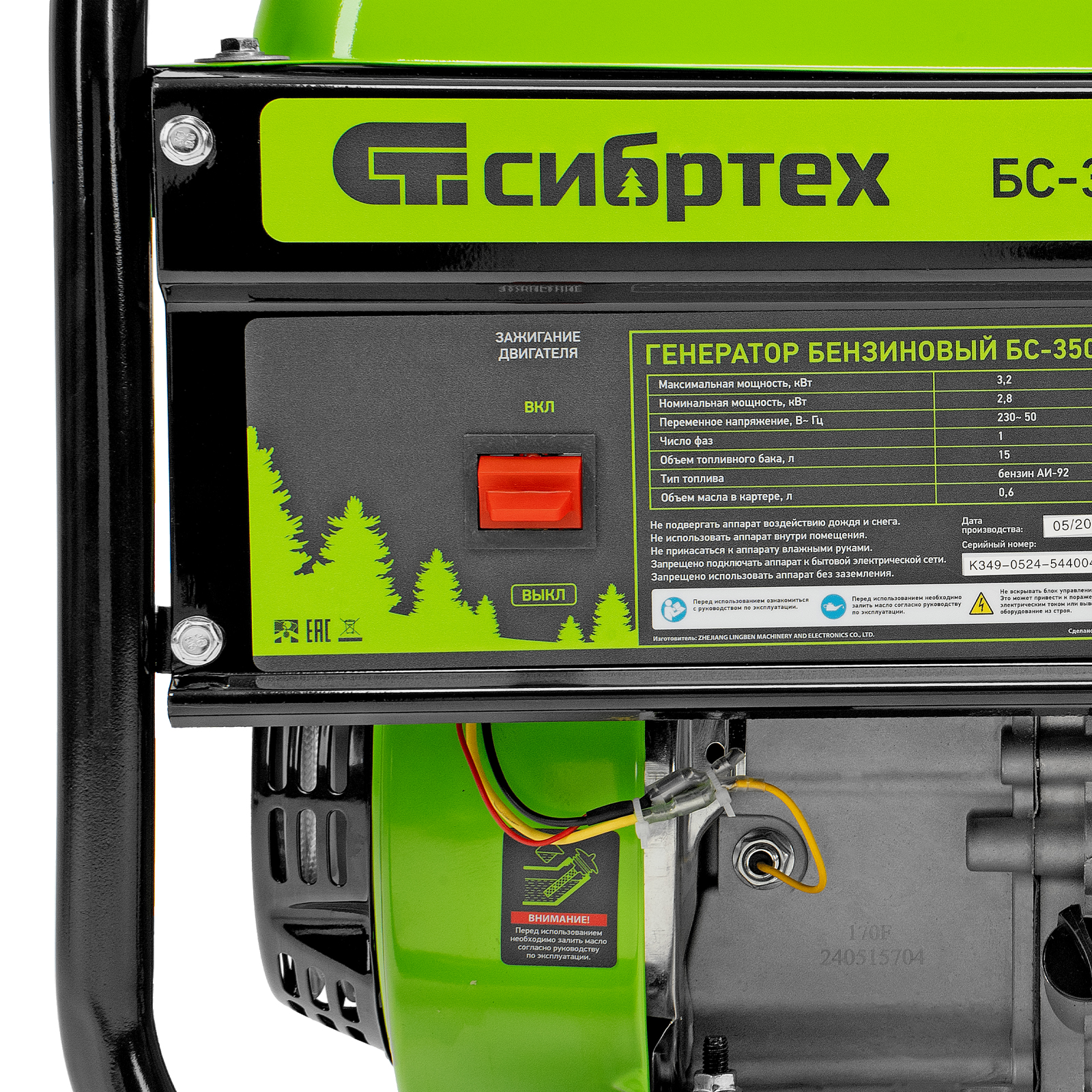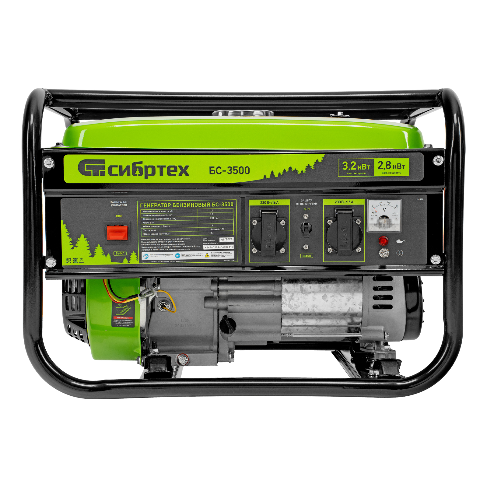 Генератор бензиновый БС-3500, 3.2 кВт, 230В, четырехтактный, 15 л, ручной стартер Сибртех в Москве