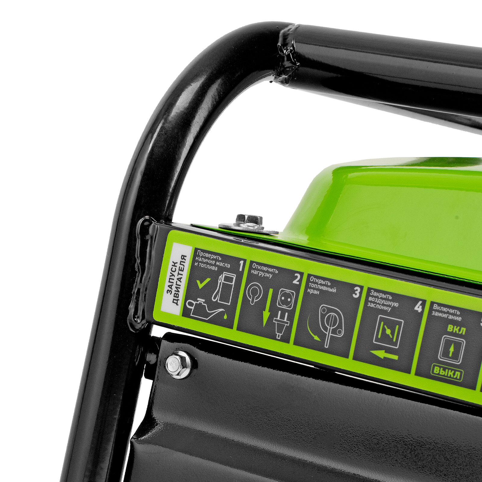 - Прочная конструкция — стальная рама надежно защищает генератор от повреждений.