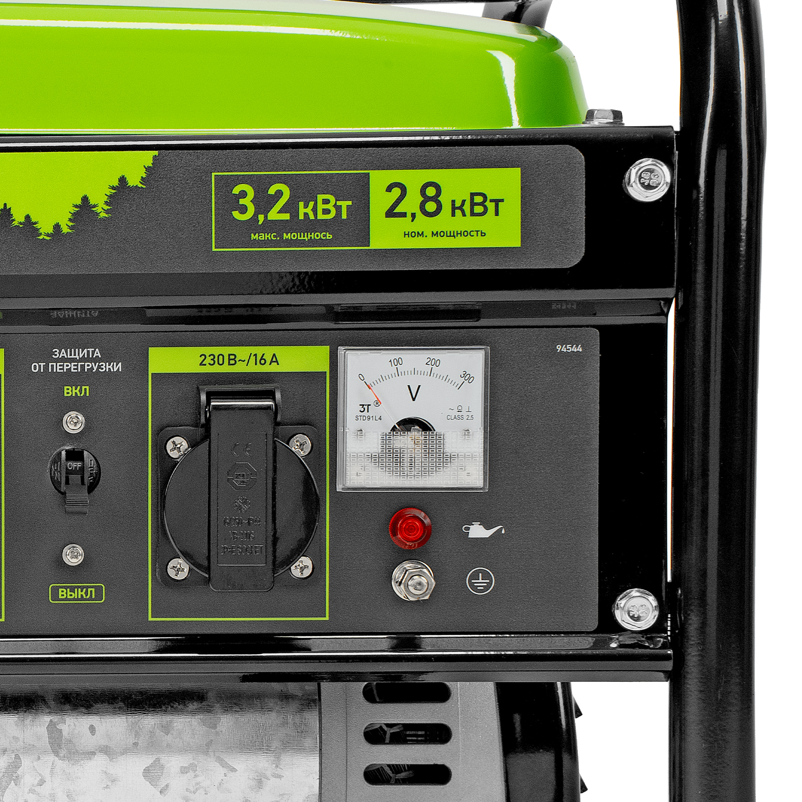 Бензиновый генератор Сибртех БС-3500 94544 на 230 В, максимальной мощностью 3,2 кВт, с 4-тактным двигателем, 15-литровым баком и ручным стартером, предназначен для электроснабжения дачи, кемпинга, небольшого магазина, гаража или строительной площадки. Весит всего 38,8 кг, что облегчает транспортировку, а значит, его можно брать на выездные работы или на природу. Выдаваемого напряжения 3,2 кВт хватает для одновременного подключения 4 ламп накаливания, холодильника, телевизора, электрочайника.