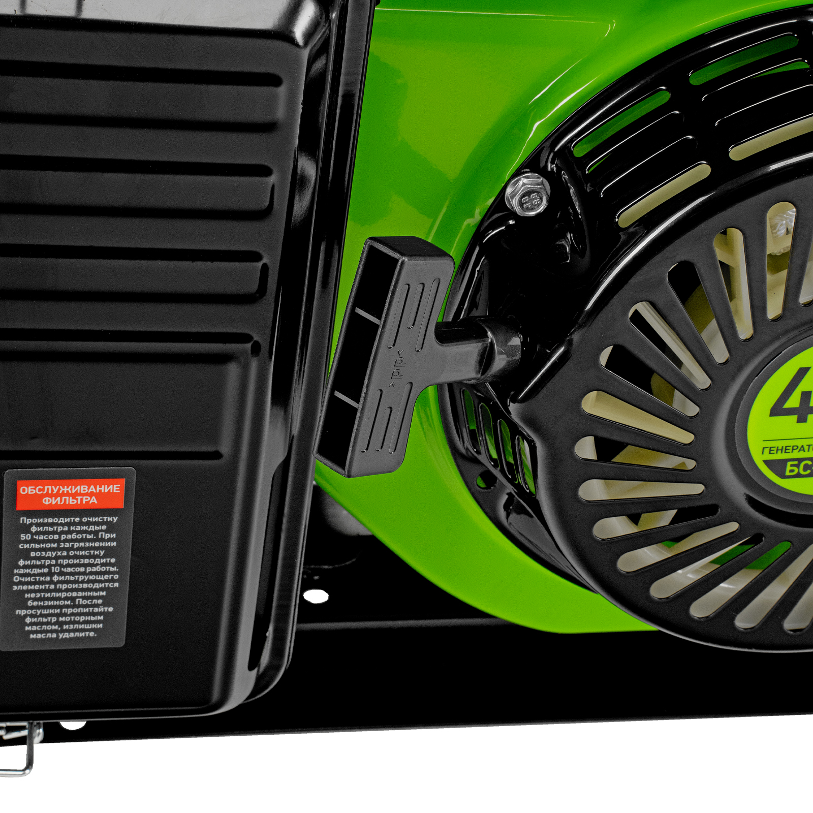 - Ручной старт — генератор легко запустится даже после долгого простоя и в случае разрядки аккумулятора.