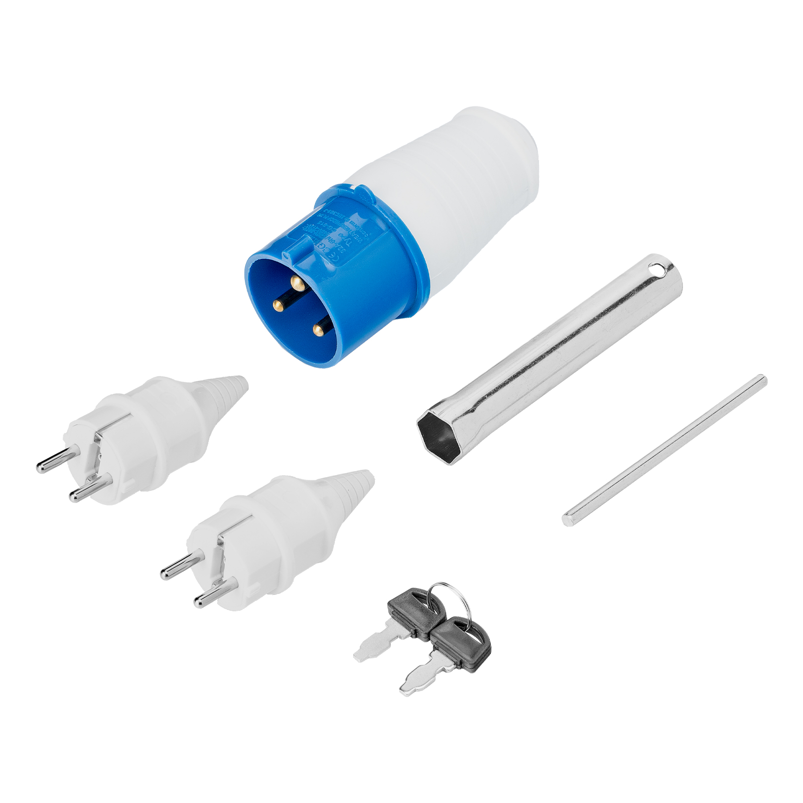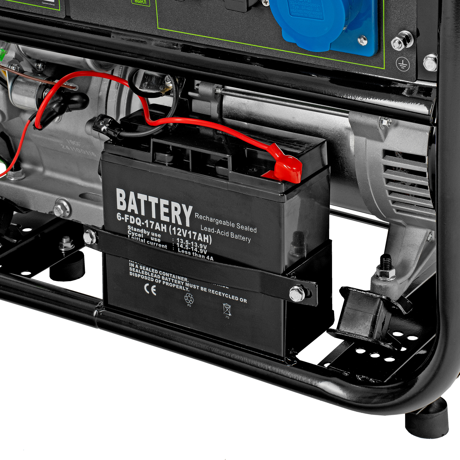Генератор - 1 штКлюч зажигания - 2 штКлюч свечной - 1 штВилка 230В/16А - 2 штВилка 230В/32А - 1 штРуководство по эксплуатации с гарантийным талоном - 1 штБатарея аккумуляторная - 1 шт |