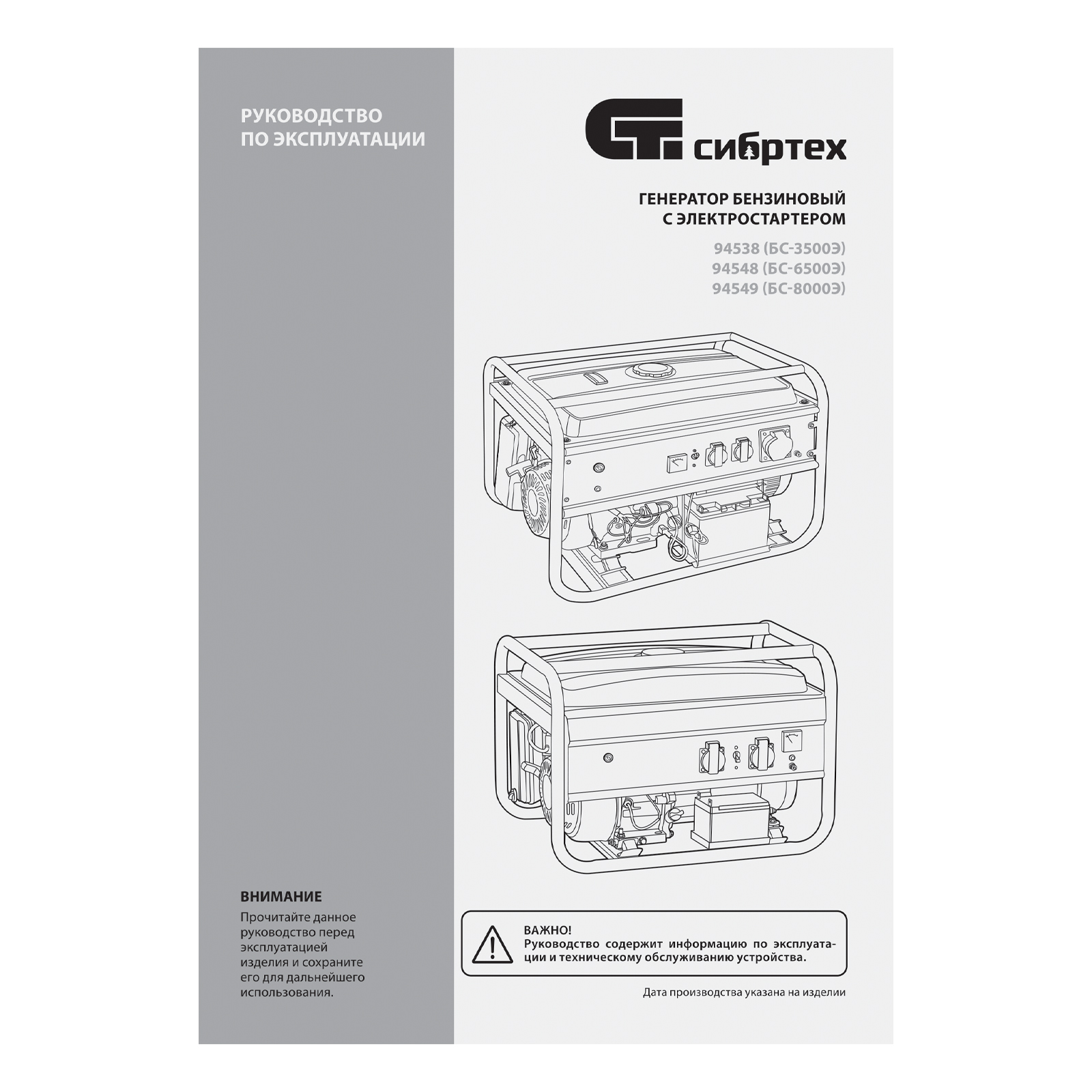 Бензиновый генератор Сибртех БС-6500Э 94548 максимальной мощностью 5,5 кВт, с 4-тактным двигателем, электростартером и баком объемом 25 л, выдает напряжение 230 В и используется для электроснабжения на даче, на строительной площадке, в магазине, в мастерской или гараже. Мощности хватает для обеспечения работы электроинструмента или одновременного подключения 4 ламп накаливания, телевизора, плиты и холодильника. Благодаря электростартеру запуск генератора осуществляется одним поворотом ключа.