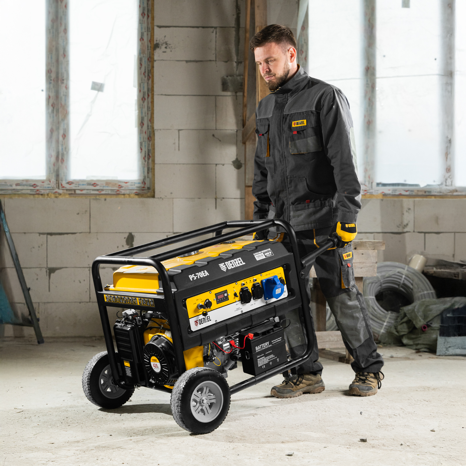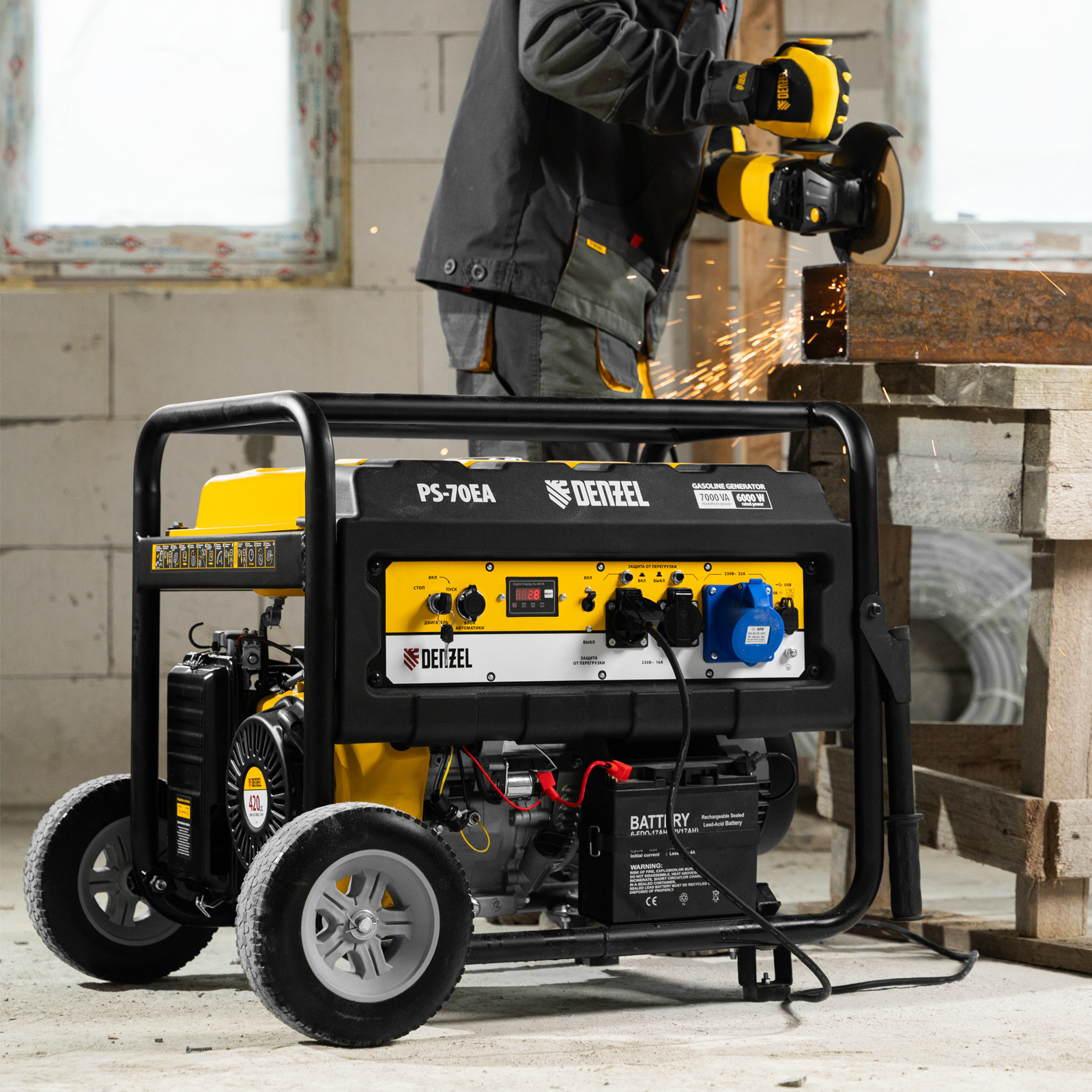 Генератор бензиновый PS 70 EA, 7.0 кВт, 230 В, 25 л, коннектор автоматики, электростартер Denzel в Москве