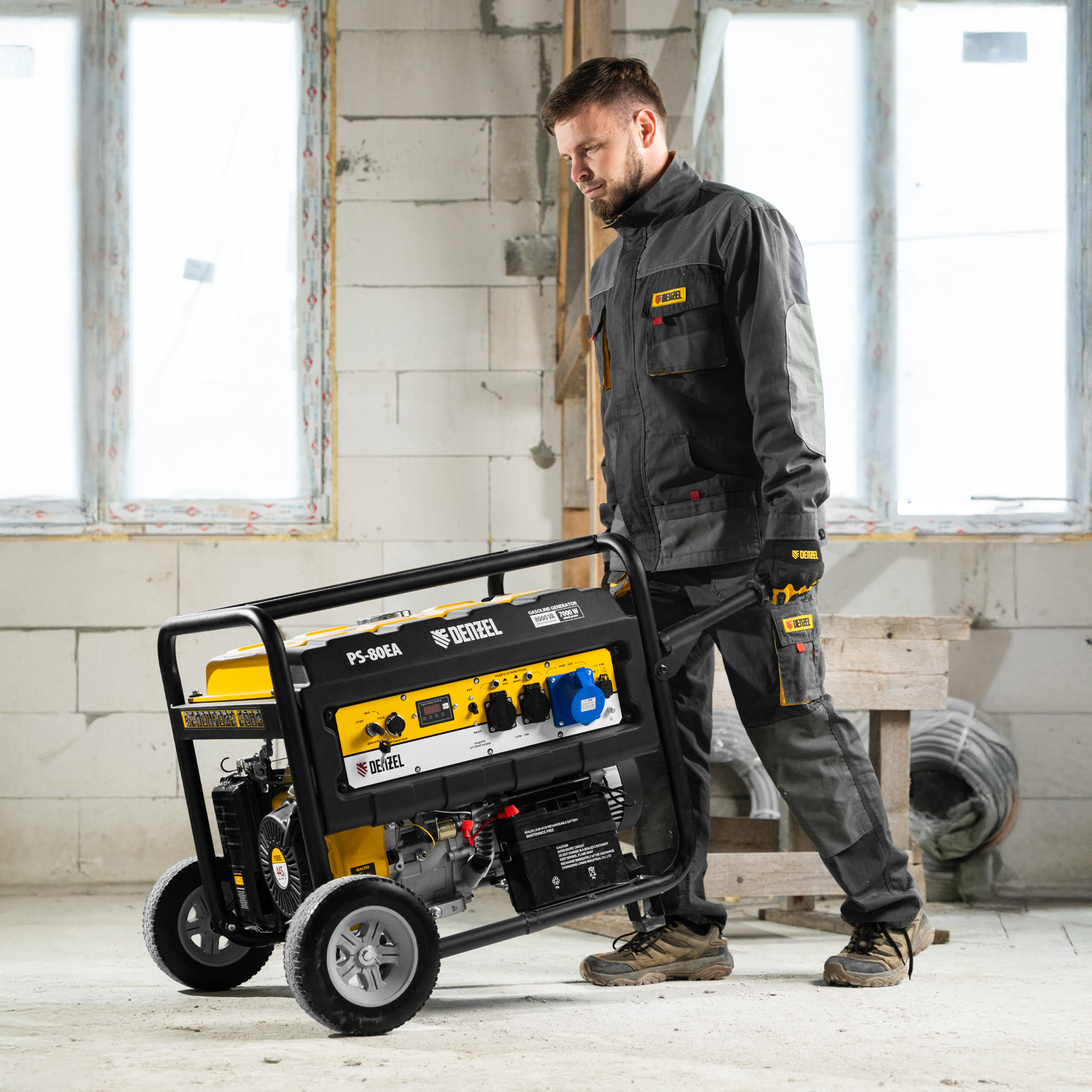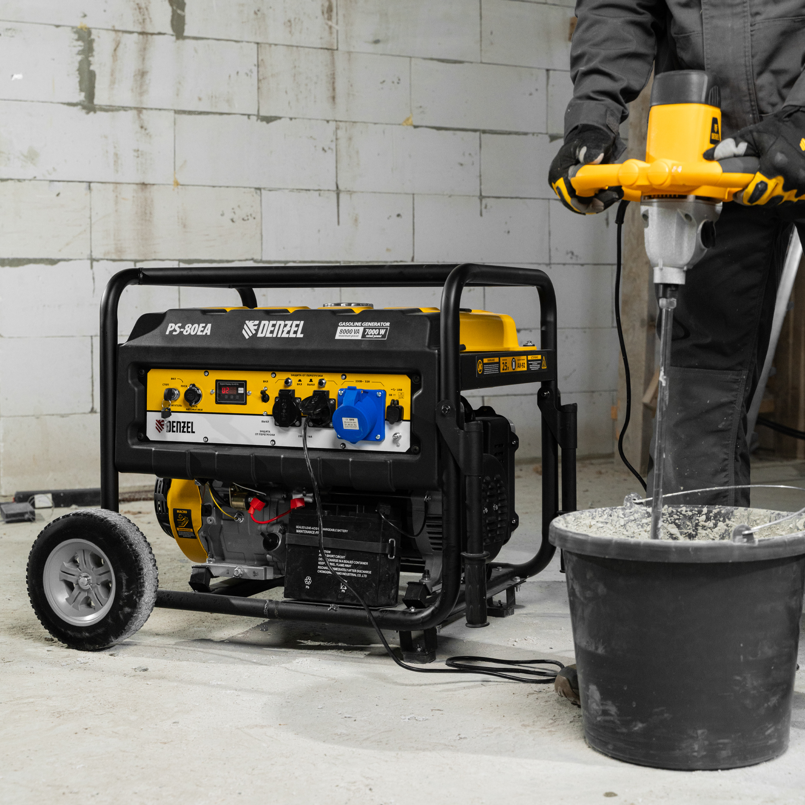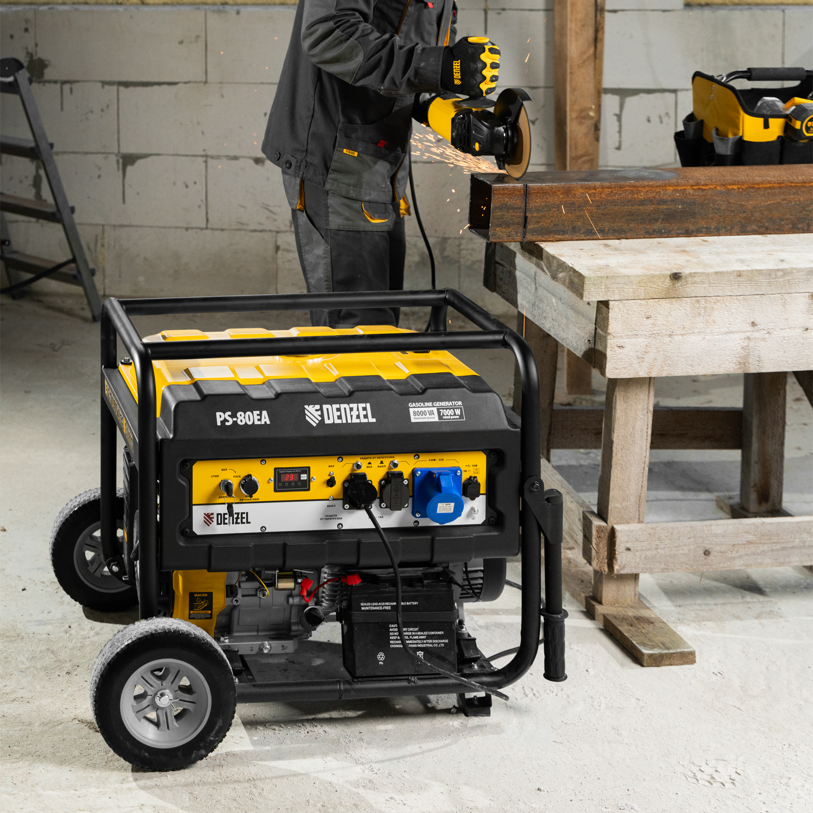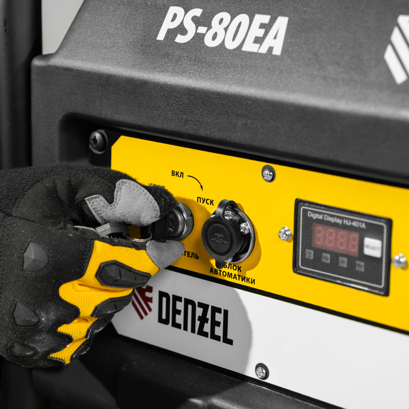 Генератор бензиновый PS 80 EA, 8.0 кВт, 230 В, 25 л, коннектор автоматики, электростартер Denzel в Москве