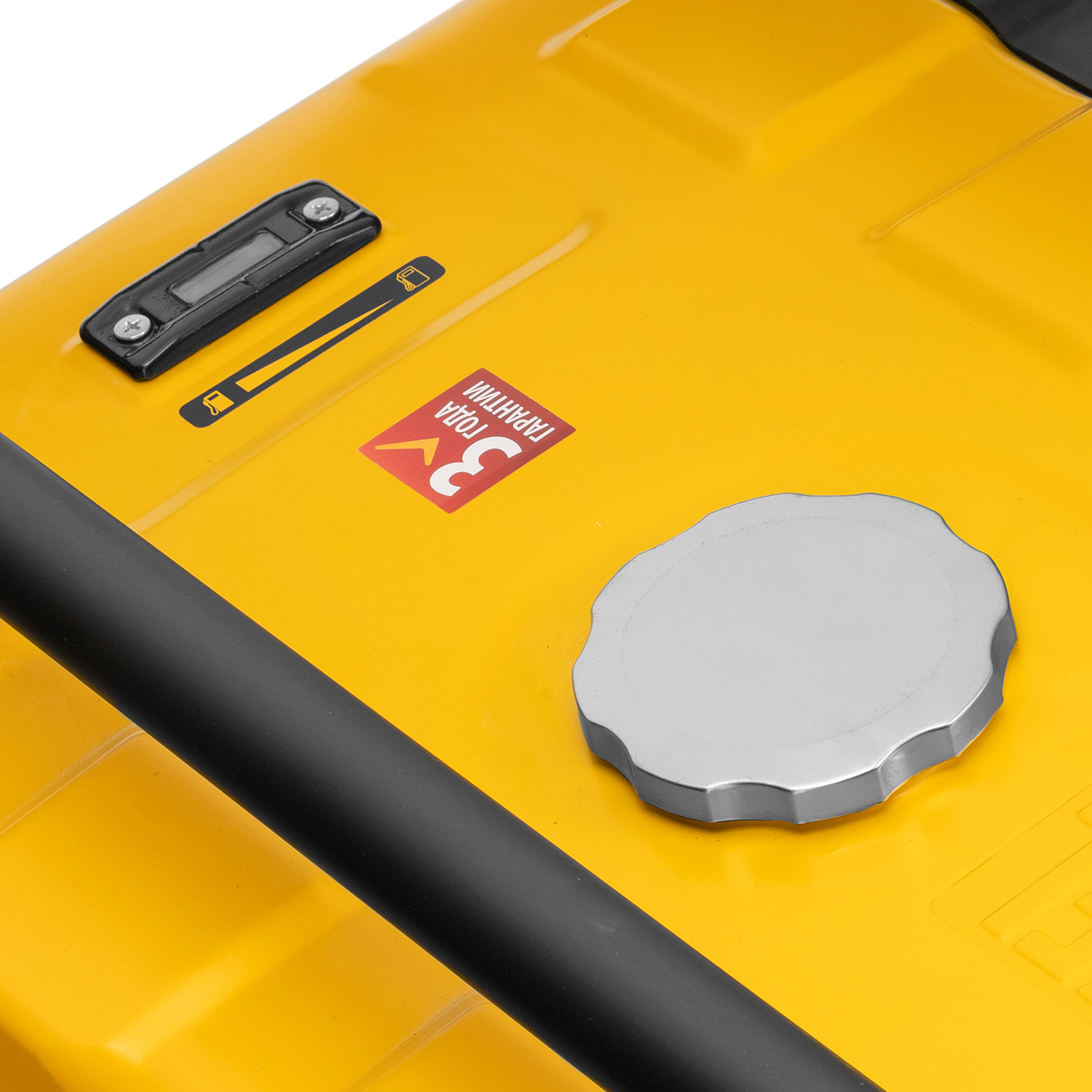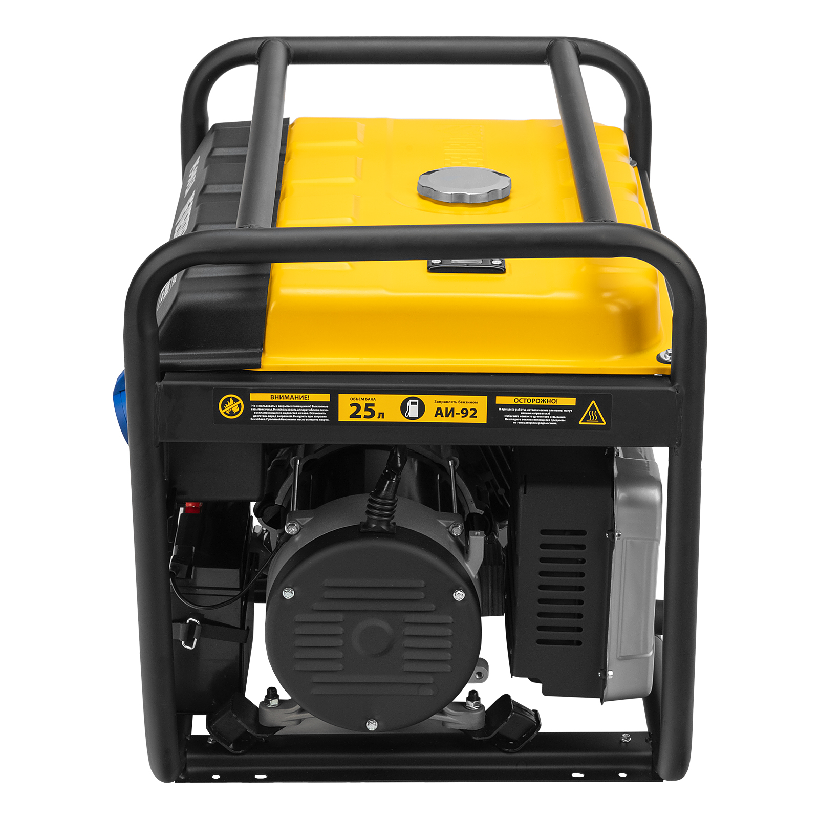 - Усиленная конструкция — рама из труб диаметром 32 мм с толщиной стенок 1,5 мм защищает генератор от повреждений.
