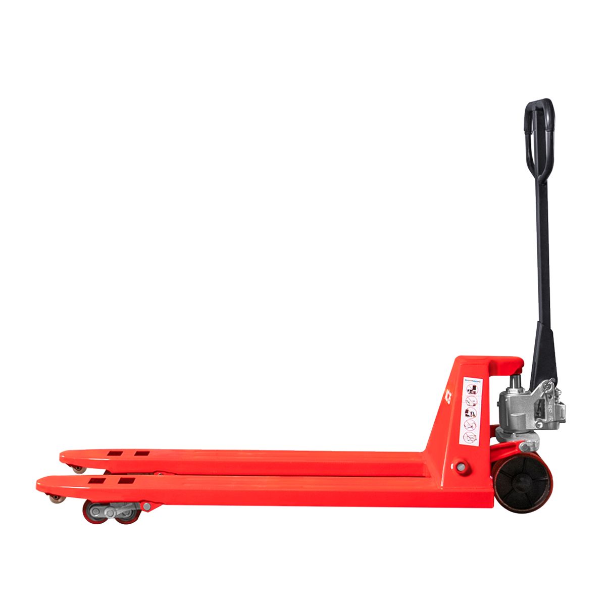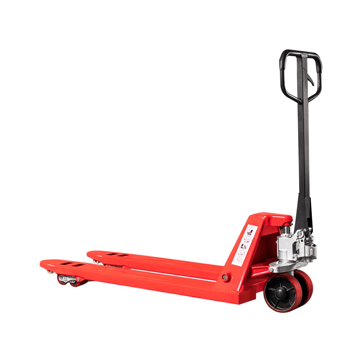 Покрытие рукоятки предотвращает скольжение рук, делая работу оператора комфортной. Наличие клапана перегруза, а также усилителей вил по всей длине, повышающих их жесткость, продлевает срок службы тележки, делая ее верным помощником на долгие годы.