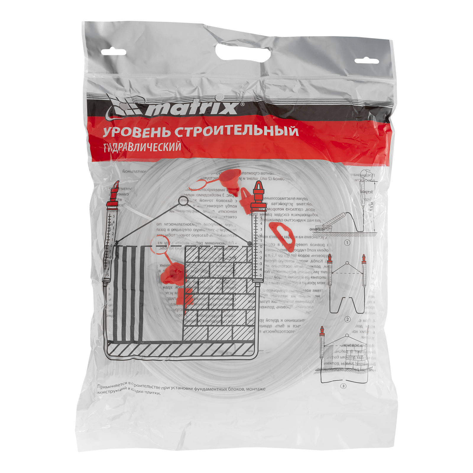 Гидроуровень Matrix 37095 с удлиненными колбами и рельефной градуировкой предназначен для выравнивания объектов на расстоянии до 25 м. Используется при проведении ремонтно-строительных работ: изготовлении опалубки, установке фундамента, кладке плитки. Особо светлые колбы с рельефной градуировкой облегчают считывание результатов измерения.