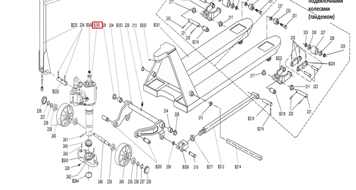 Гидроузел в сборе для тележек гидравлических RHP(BF) шток 35 мм (сталь) (Oil pump Assembly, B200) в Москве