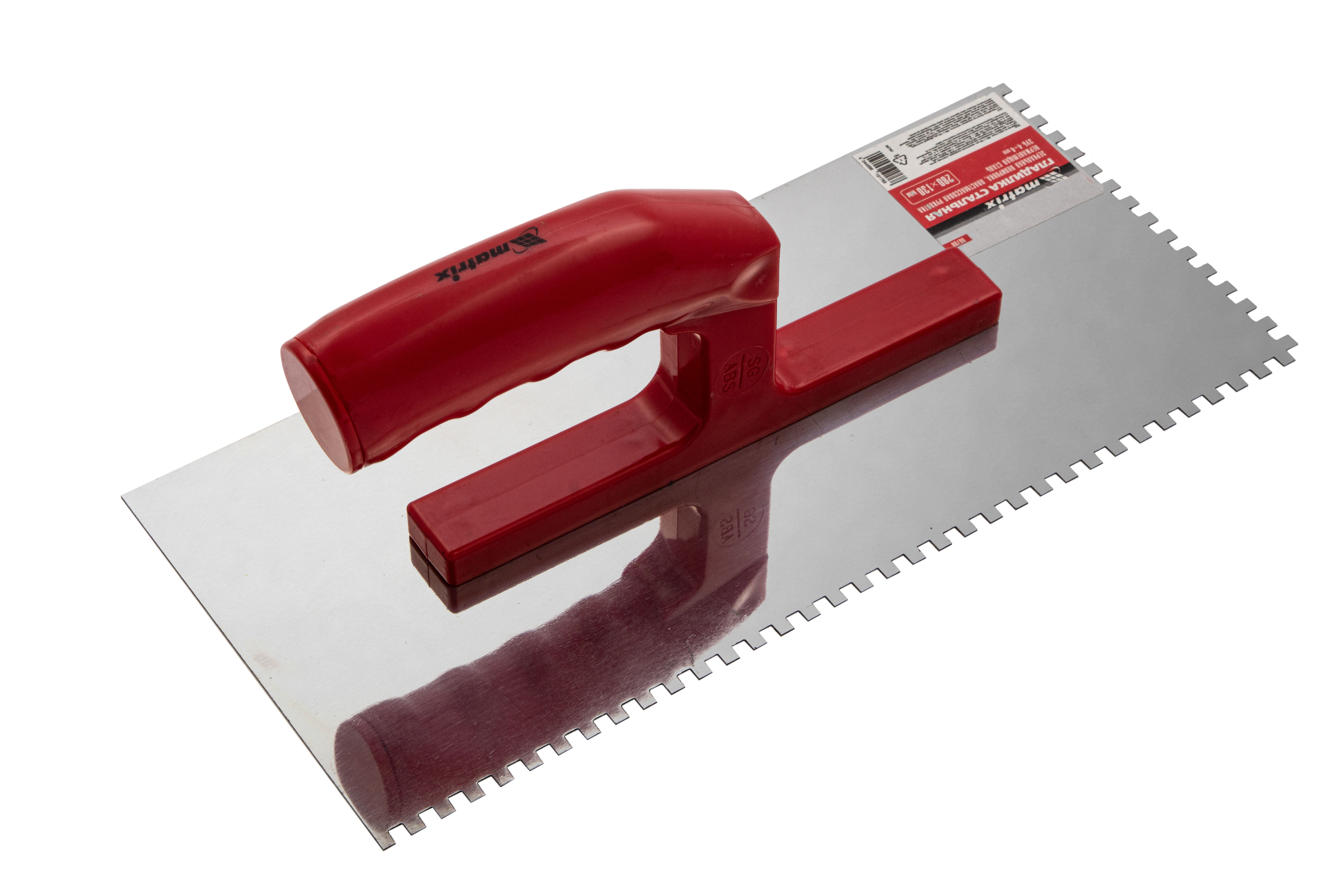 Гладилка из нержавеющей стали, 280 х 130 мм, зеркальная полировка, пластмассовая ручка, зуб 4 х 4 мм Matrix в Москве