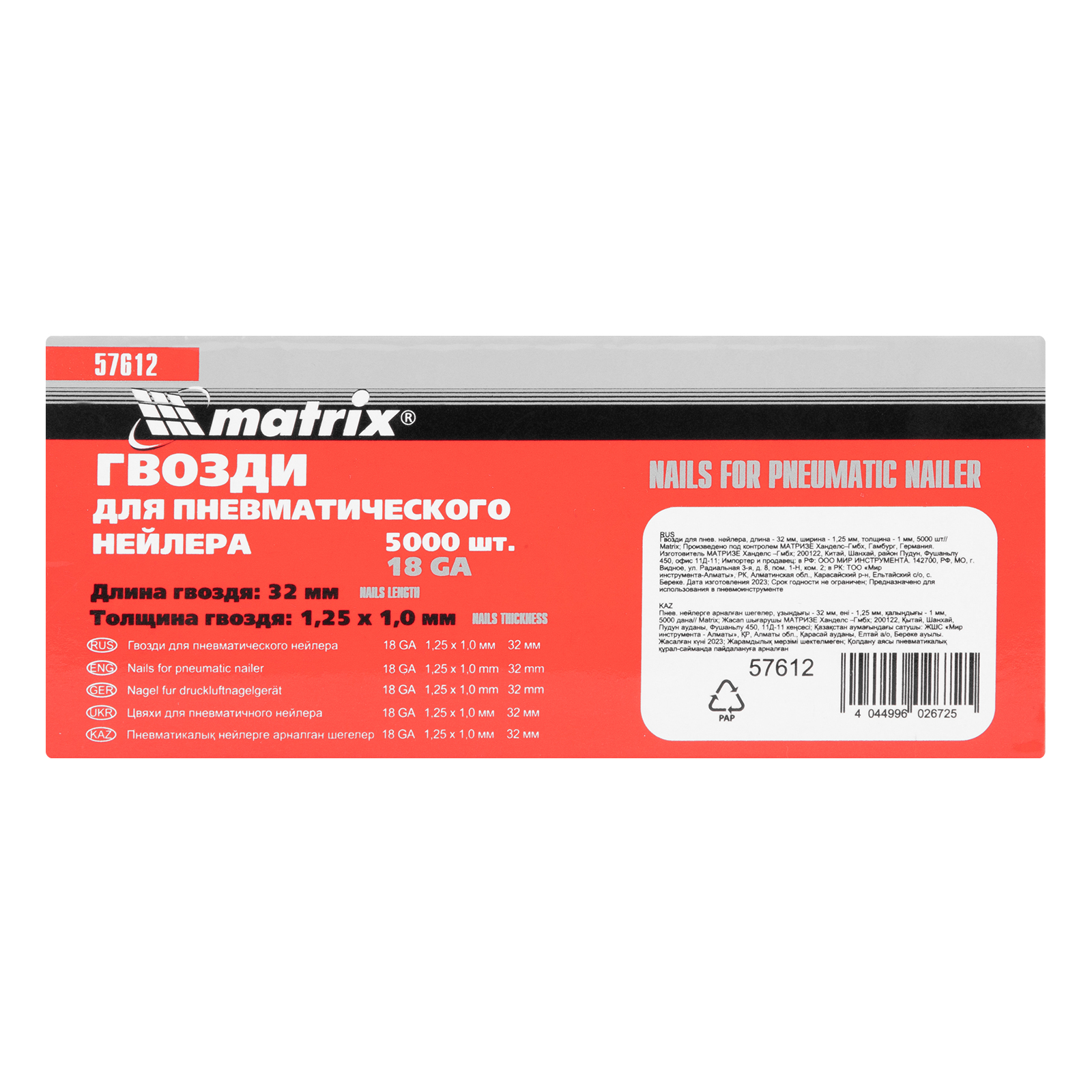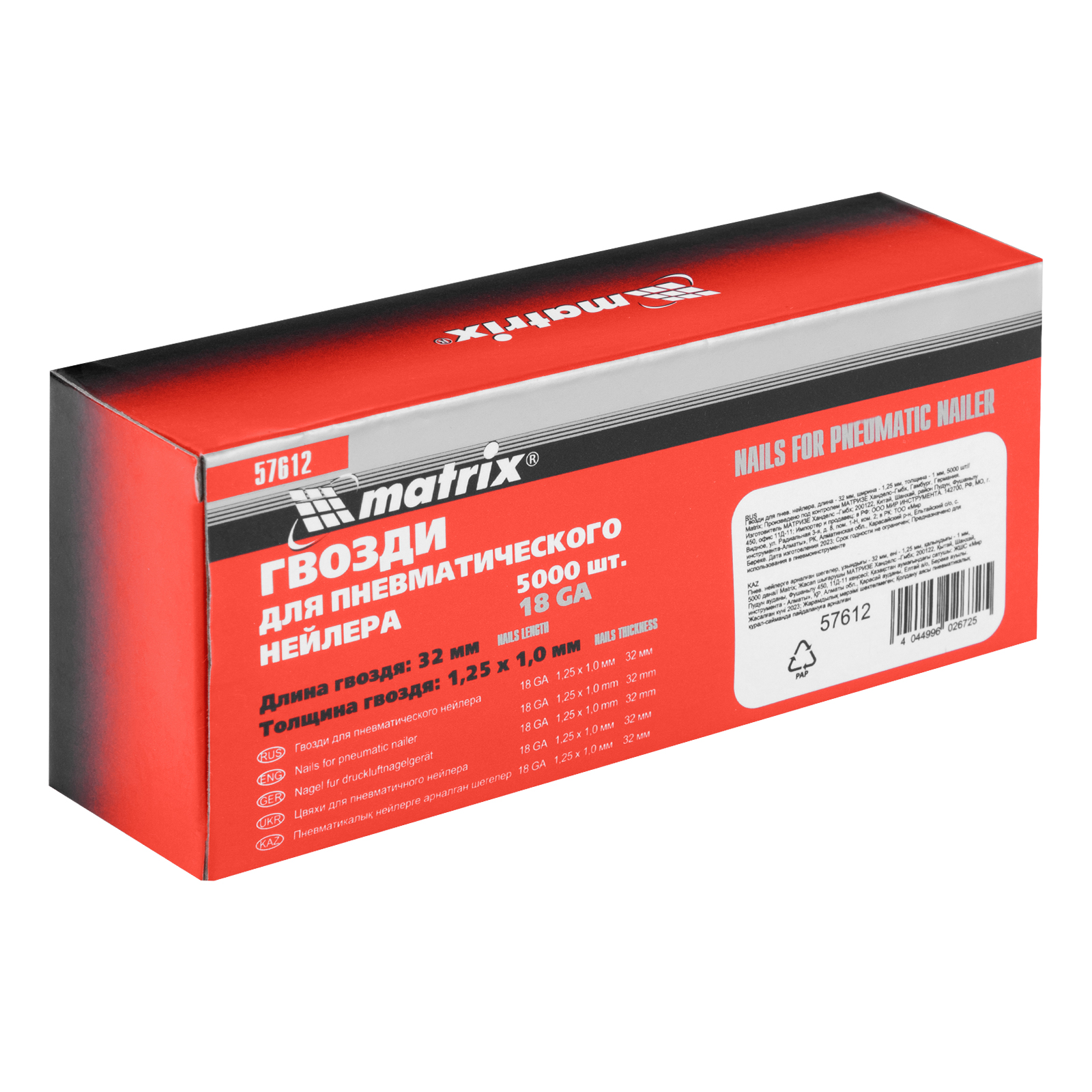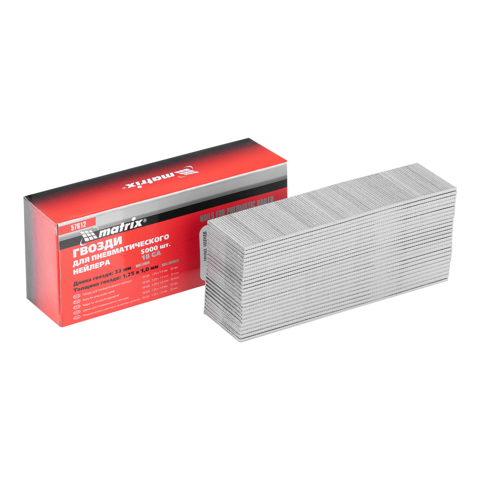 Гвозди для пневматического нейлера, длина 32 мм, ширина 1.25 мм, толщина 1 мм, 5000 шт Matrix в Москве