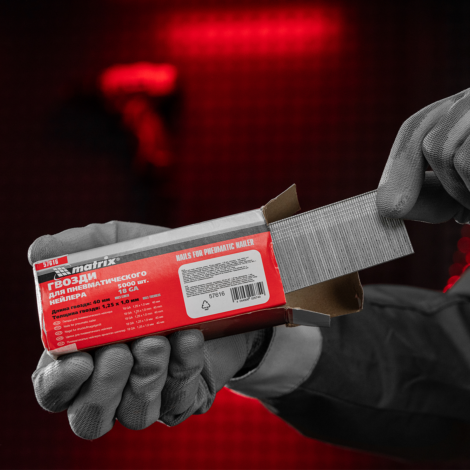 Гвозди для пневматического нейлера, длина 40 мм, ширина 1.25 мм, толщина 1 мм, 5000 шт Matrix в Москве