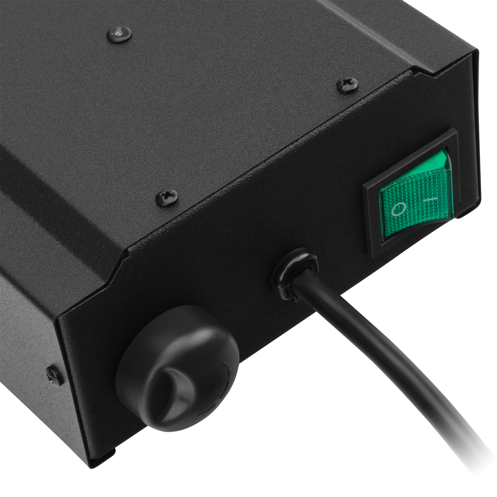 - Выбор оптимальной интенсивности нагрева — мощность плавно и точно регулируется с помощью встроенного диммера в диапазоне 500-2000 Вт, что позволяет установить поток тепла, комфортный для вас.