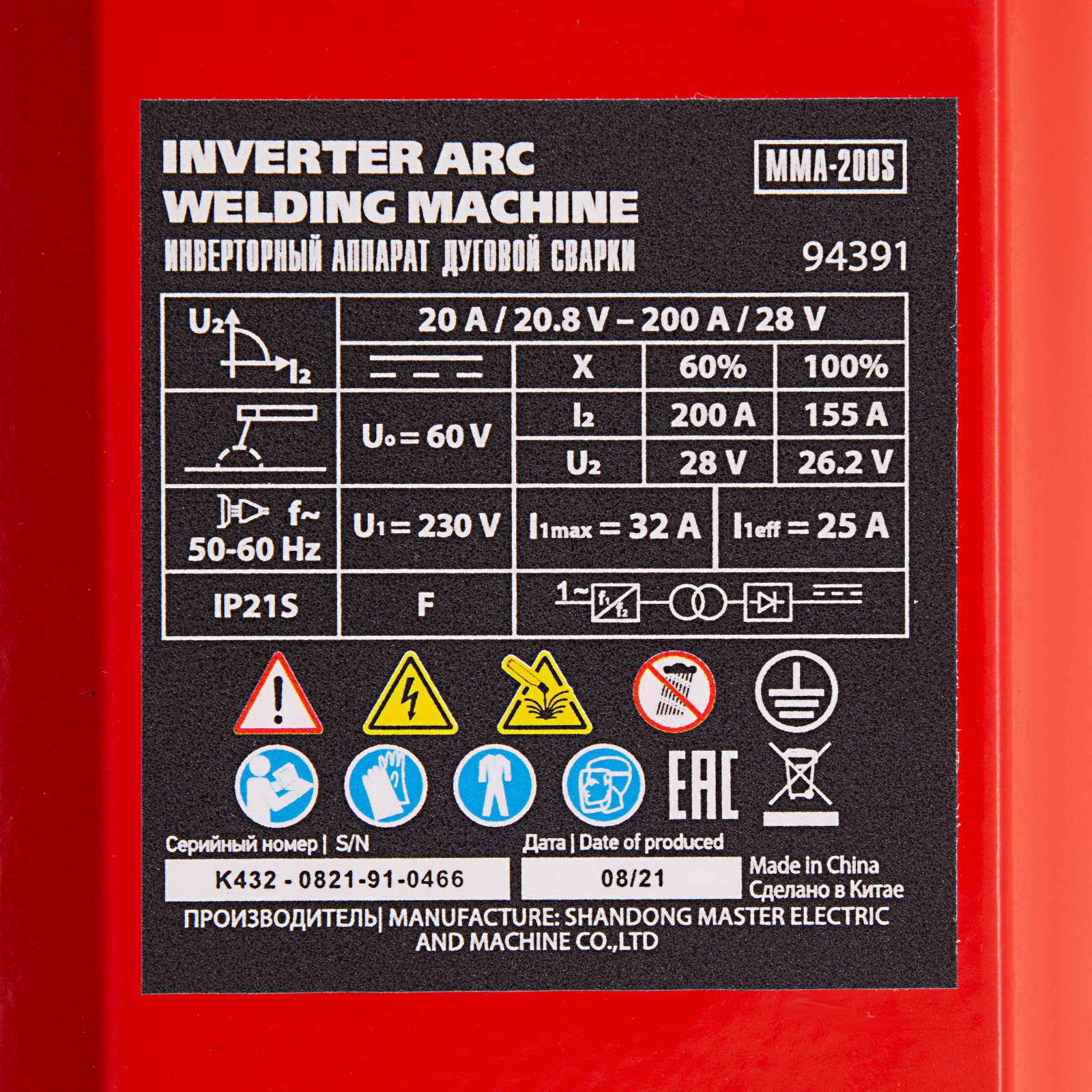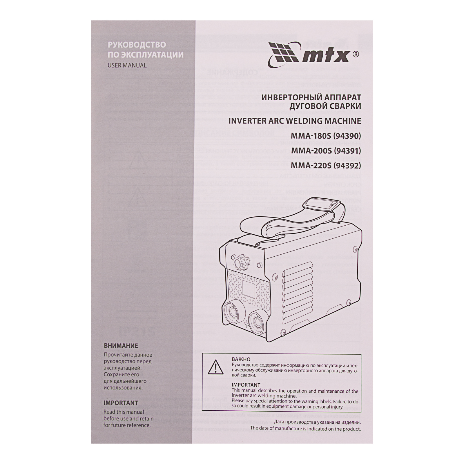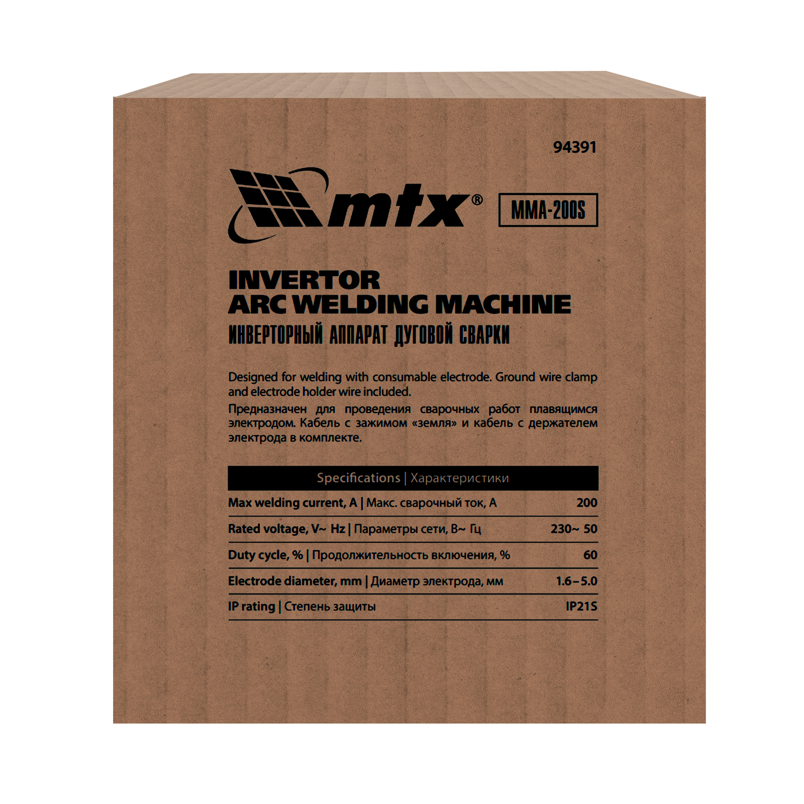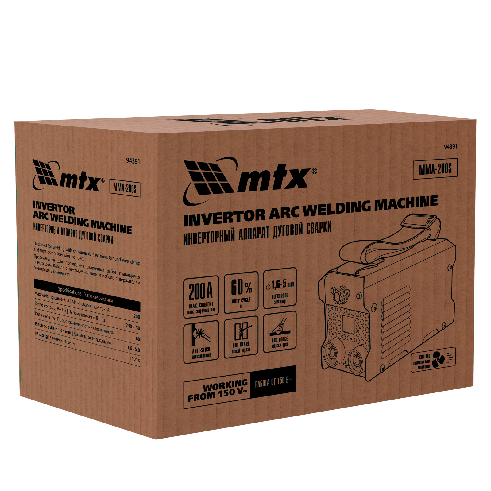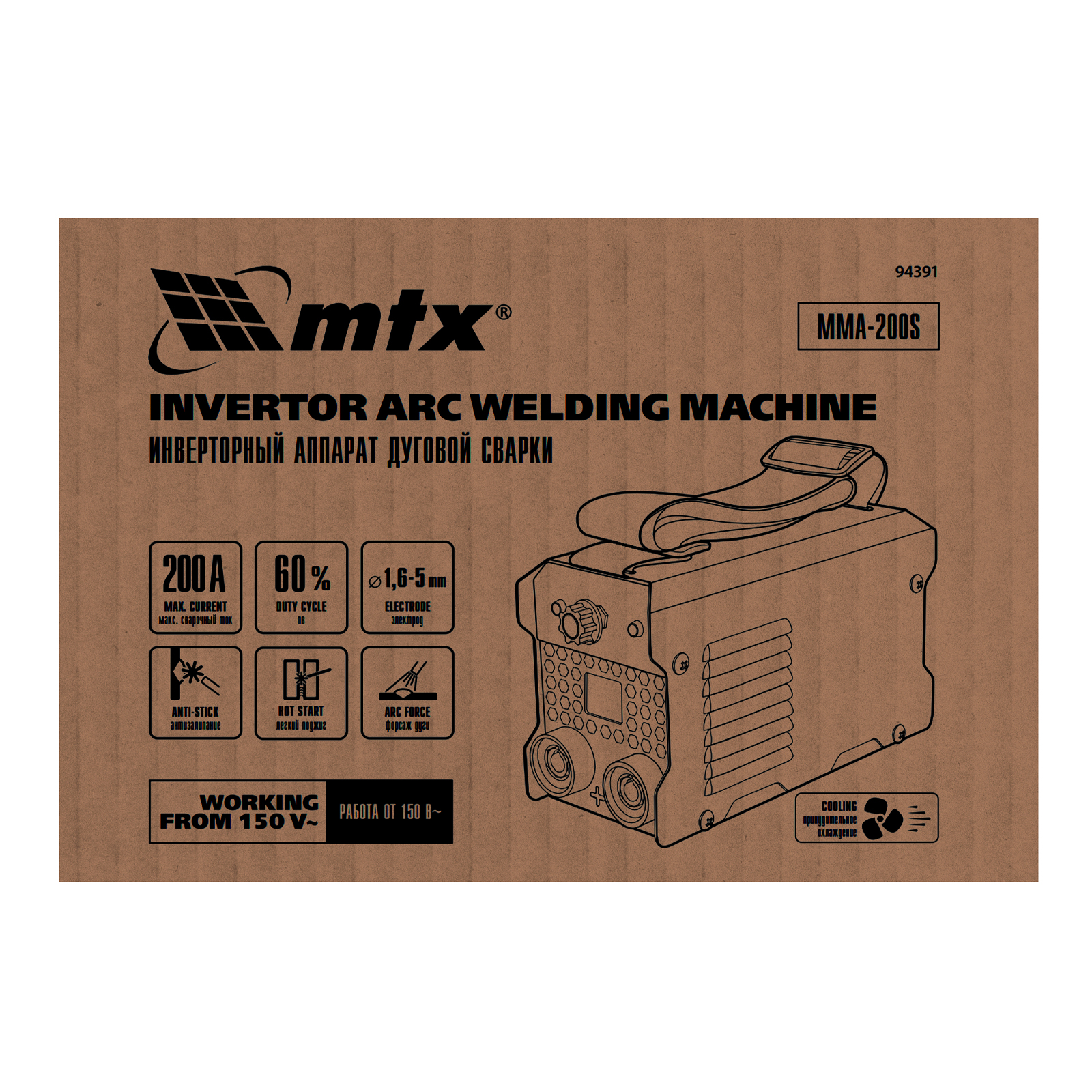 Инверторный аппарат дуговой сварки MMA-200S, 200 А, ПВ60%, диаметр электрода 1,6-5 мм MTX в Москве