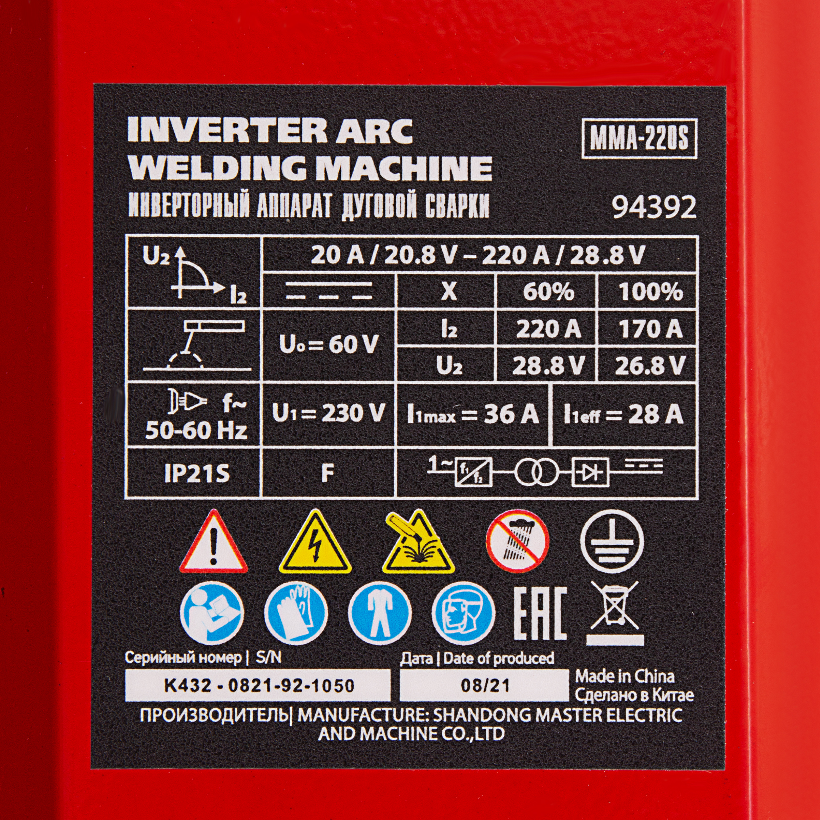Инверторный аппарат MTX MMA-220S 94392 предназначен для дуговой сварки изделий из низкоуглеродистой стали с помощью штучных электродов диаметром 1,6-5 мм. Сварочный ток плавно регулируется в диапазоне 20-220 А, продолжительность включения (ПВ) на максимальном токе составляет 60%. Аппарат позволяет эффективно выполнять поставленные задачи даже при нестабильном напряжении. Оптимально подходит для использования в частных хозяйствах, будет полезен сотрудникам ЖКХ и работникам аварийно-ремонтных бригад. Отличается низким уровнем шума.