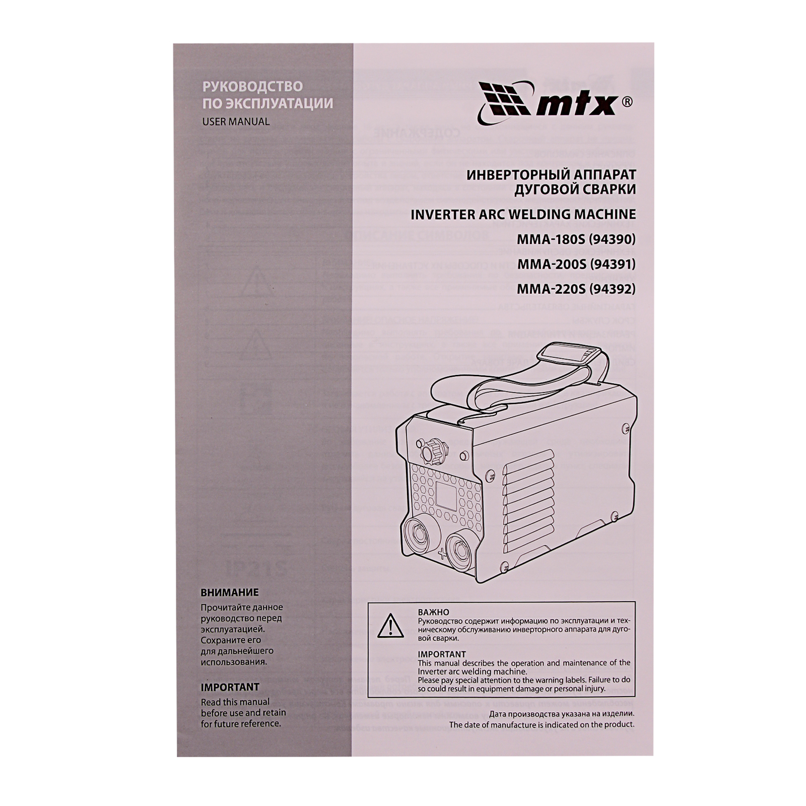 Инверторный аппарат дуговой сварки MMA-220S, 220 А, ПВ60%, диаметр электрода 1,6-5 мм MTX в Москве